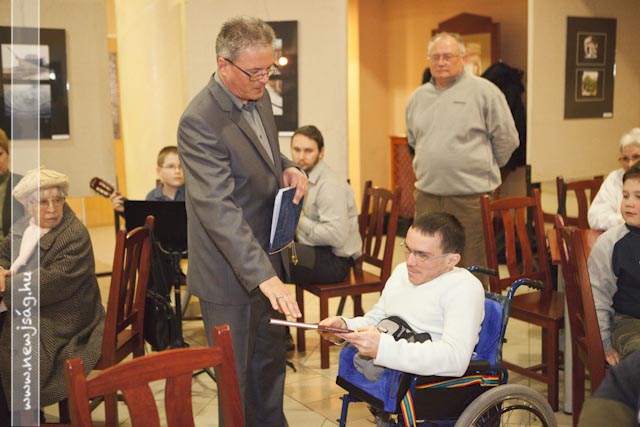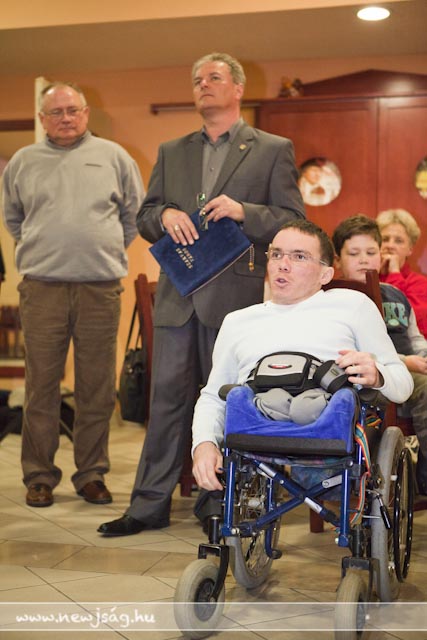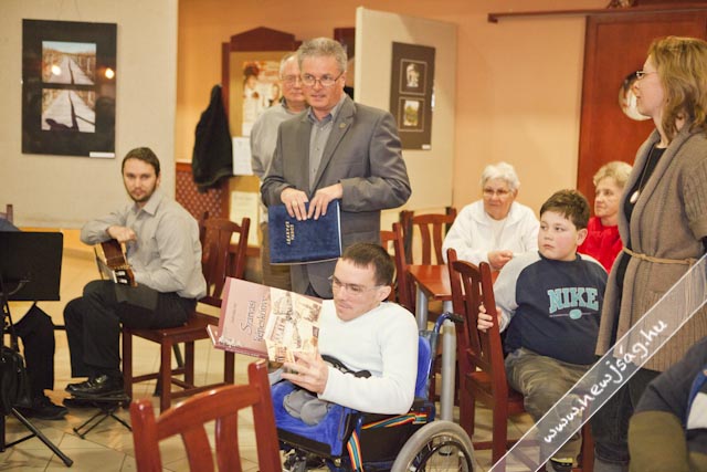 A fotóst elkísérte Vidó György, a rehabilitációval foglalkozó tanár, aki több mint 10 éve kíséri figyelemmel, segíti Faluhelyi Balázs életét, és aki csak öt percet kapott neveltjének bemutatására, pedig órákat tudott volna beszélni. Városunk jegyzője stílszerűen Dobrotka Pál Szarvasi képeslapok című könyvével kedveskedett az ifjú fotósnak.