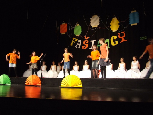 Hosszú ideig erősen tartotta magát a kemény tél, ezért a szlovák iskola tanulói úgy gondolták, hogy farsangi időszak révén eljött az ideje a télűzésnek, a vidám, zajos ünneplésnek. Dudát ugyan nem fújtak, kereplőt sem lengettek, viszont a művelődési házban megtartott több órás, jó hangulatú műsorukkal a tavasz elé mentek. Mint minden évben, idén is a 8. osztályos tanulók adták elő a nyitótáncot, a színes mulatságot pedig a hercegi pár nyitotta meg. Amint a hosszú, suhogó selyemruhás angol és bécsi keringőt lépkedő lányok és táncosaik elhagyták a színpadot, azonnal a sok csínytevésükről híres 1./a osztályos vörös és derűs Pumuklik perdültek táncra, a díszvendégek, nézőként megjelent szülők és a tanári kar szeme láttára. A ravaszságnak nem voltak híján az 1./c osztályos rókakölykök sem, amit a huncut fabábúk, az 1./b-s kis Pinokkiók tánca követett.