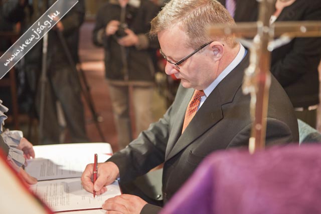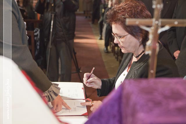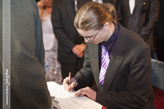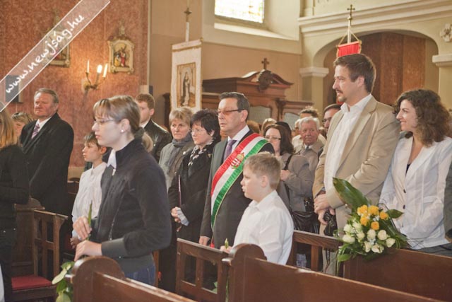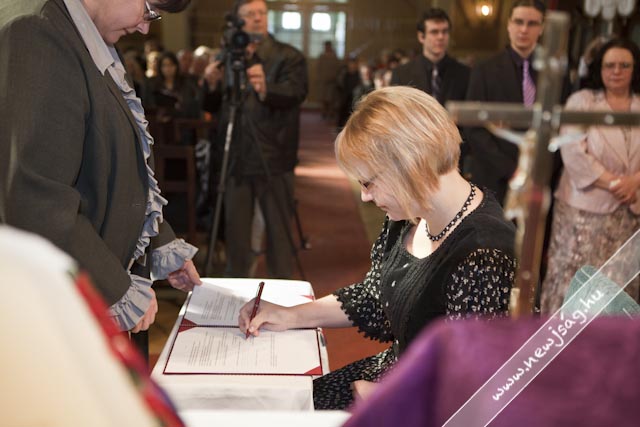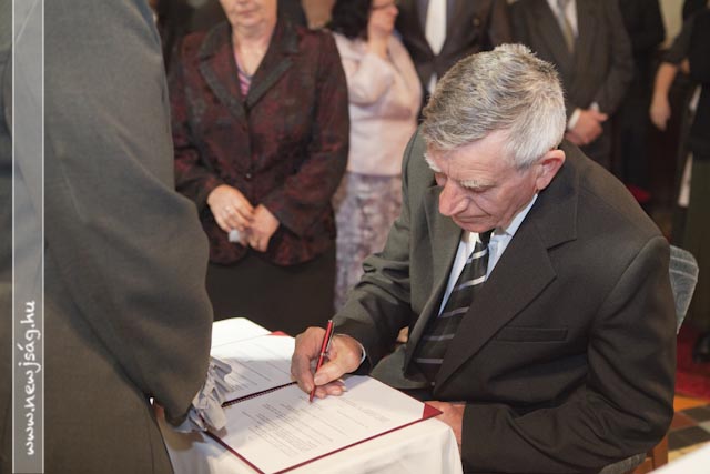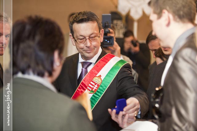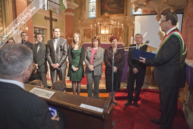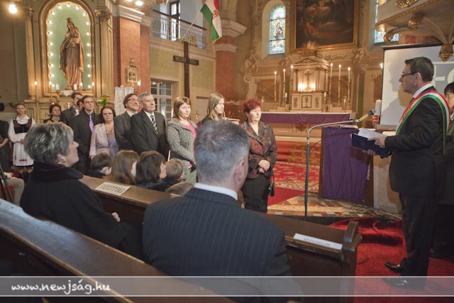 Három határon túli településről tizenhárman tették le állampolgársági esküjüket ezen a jeles napon. A vajdasági Adáról öten, az Arad megyei Pankotáról négyen, és a sok szarvasi szívének oly kedves Hargita megyei Szentegyházáról Burus Mária Ella polgármester és családja érkezett, hogy elmondja az eskü szövegét és átvegye az állampolgárságot igazoló okmányokat. A megható eseményen a mosolygós Seidl Ambrus üdvözletével kezdődött, akinek örömére az adott okot, hogy másodpercekkel előtte Babák Mihály polgármester átadta neki azt a határozatot, amiben tájékoztatja arról, hogy a Testület 2,5 millió forinttal járul hozzá a toronysüveg elkészítéséhez.