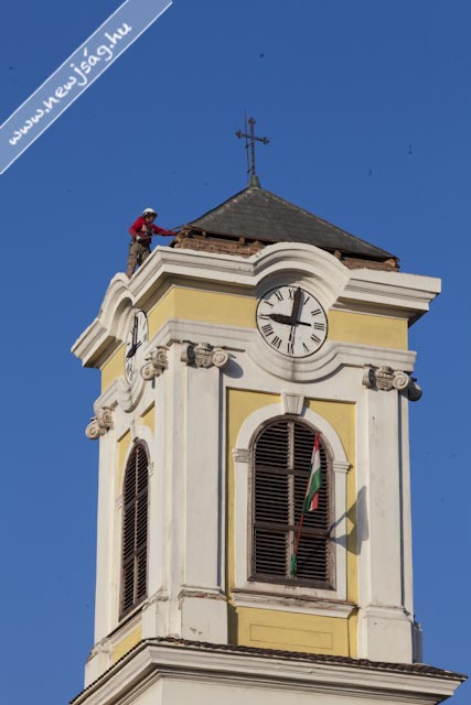 Seidl Ambrus plébános tájékoztatása szerint a toronysüveg megemelése július 8-án várható. Holnap, azaz csütörtökön 9 órakor várják a süveg tetejére kerülő keresztet, ami jó másfél ember magas. Bár a kereszt be lesz csomagolva, és csak a magasban lesz véglegesen kibontva, akit érdekel, azt szeretettel várják a templomban, ahol ki lesz állítva.