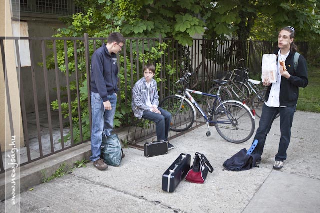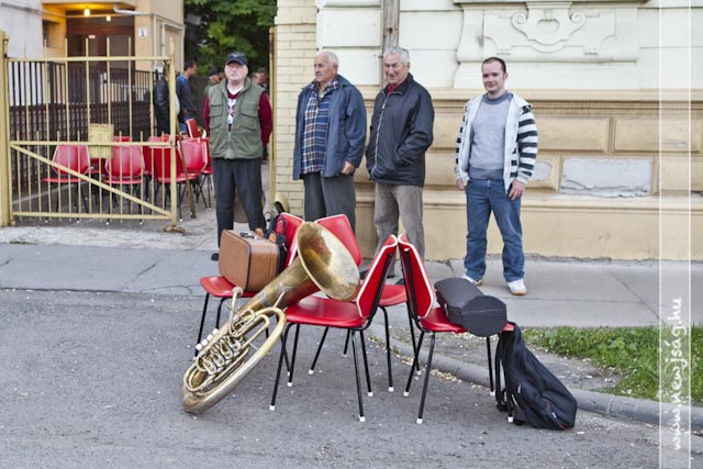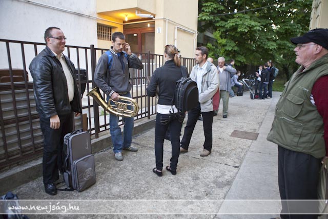 Gyülekező fél hatkor a bázison. Ez legalább ötös kelést feltételez a zenészeknél (ill. a távolabb lakó zenésztanoncok szüleinél). A Lengyel-palotához várják a platós teherautót, ami körbe fogja vinni a bandát a városon. Mint kiderült, a kör inkább össze-visszát jelent. Kis fejtörést okoz ezen a reggelen, hogy huszonketten jöttek össze, őket kell elhelyezni egy véges méretű platón. Az emberek elhelyezése nem is lenne akkora probléma, de a néhány hangszer akár kétembernyi helyet is igényelhet.