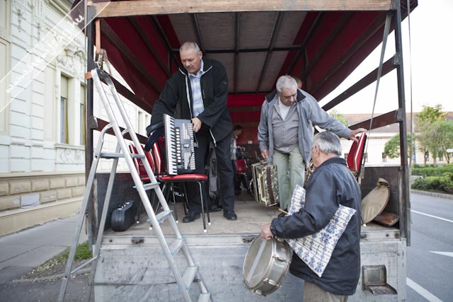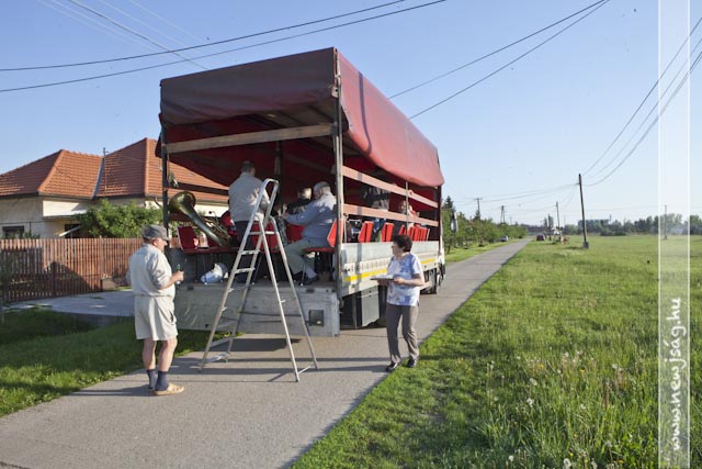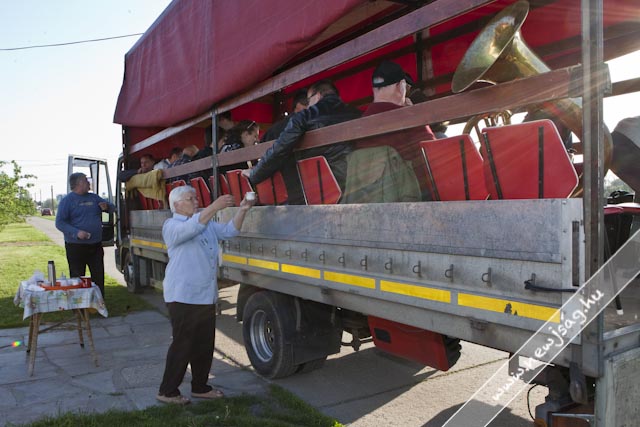 Tervszerű indulás 6 órakor. A teherautó alig fordul ki a Szabadság utcára, Szabados Tóth Gábor zenekarvezető bemondja az első számot, Fejérváry induló, és kezdetét veszi a bő ötórás zenés kocsikázás.