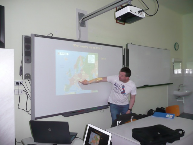 Hétfőn kezdődött az iskolai program, ahol, a diákok játékos nyelvórákon vettek részt, a vendég tanárok pedig előadást tartottak saját régiójukról a magyar diákok részére angol nyelven, illetve projektmegbeszélésen vettek részt, és megismerkedtek a magyar intézmény egyes egységeivel, az általános iskolával, a szakközépiskolával, a szakiskolával is a gimnáziumi részen kívül, így összehasonlíthatták azt saját országuk intézményrendszerével.