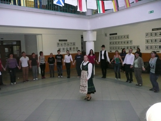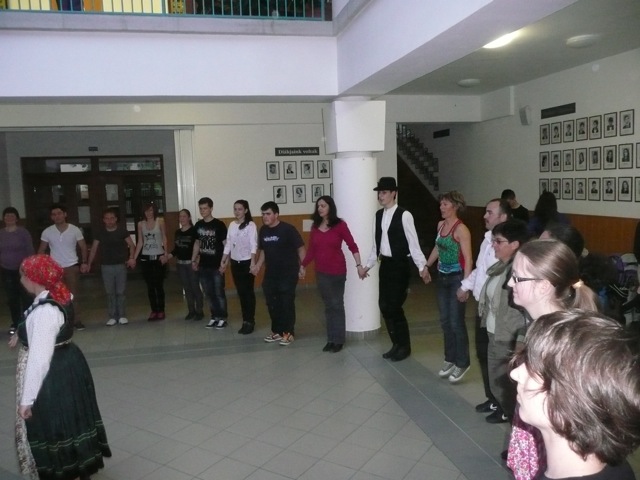 A délután is a sport jegyében telt, hiszen a kenuzást próbálhatták ki vendégeink a Körösön, itt is a vendéglátók segítségével, vegyes csoportokat alkotva. Természetesen rendkívül nagy sikere volt ennek is. Ezzel azonban még nem volt vége, mert este újra összegyűltünk iskolánk tágas aulájában, ahol a helyi néptáncosok segítségével egy igazi magyar hagyományt, a táncházat elevenítettük fel, amit szintén mindenki nagyon élvezett. A búcsúvacsorát már a Vadászkürt vendéglő főzte meg nekünk, adózva a magyar ízeknek, mert a híres magyar gulyáslevest és túrós csuszát nem hagyhattuk ki. Ezúton is köszönjük szíves vendéglátásukat és türelmüket, hiszen vendégeink nem szívesen hagyták ott e hangulatos helyet, ahol minden nemzet külön majd együtt is dalra fakadhatott, emlékezetessé téve az estét.