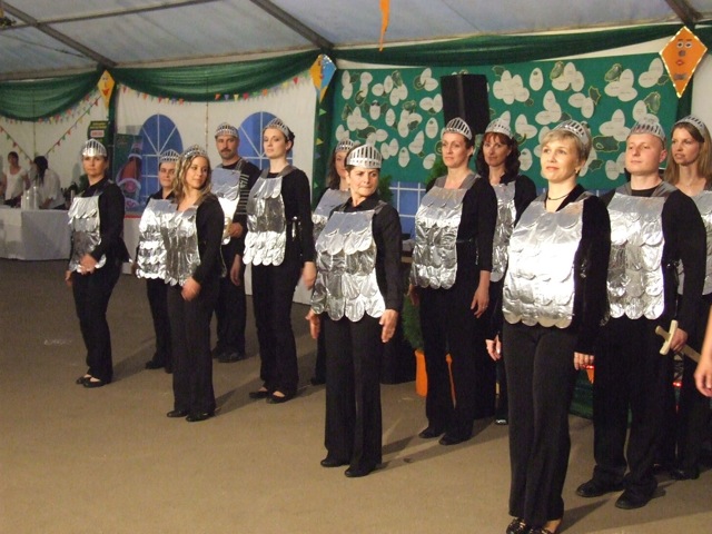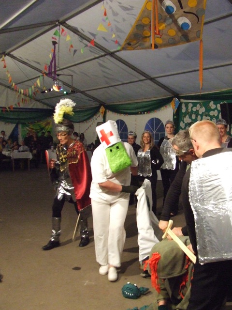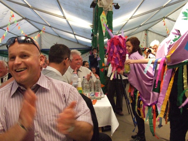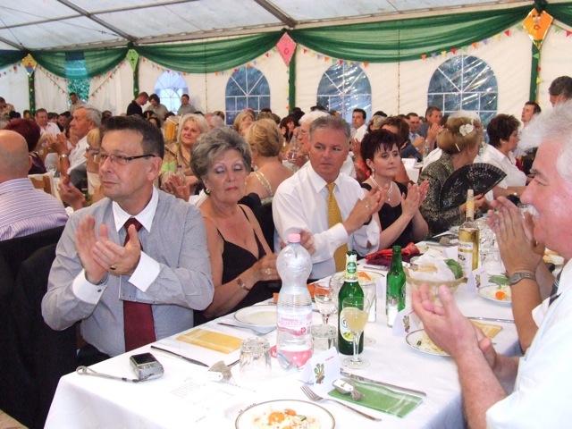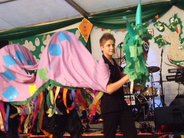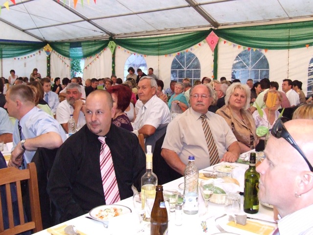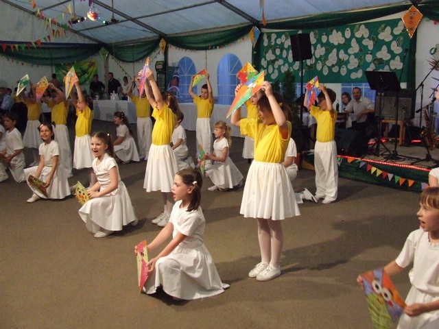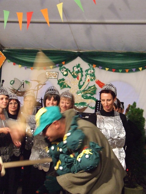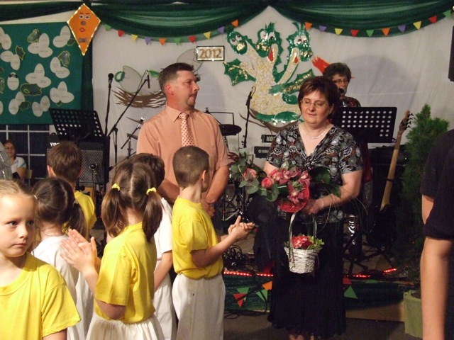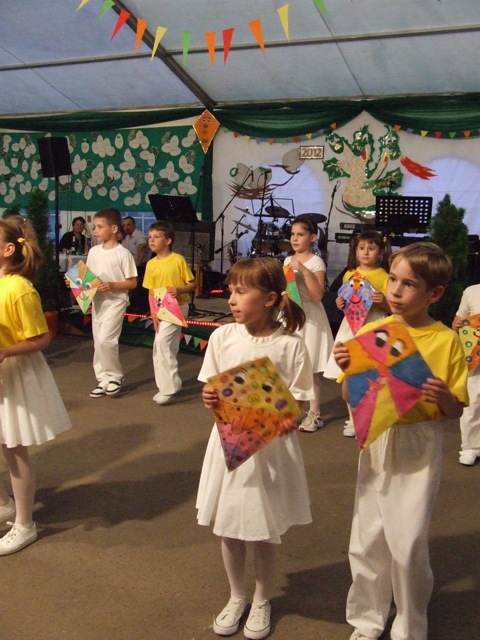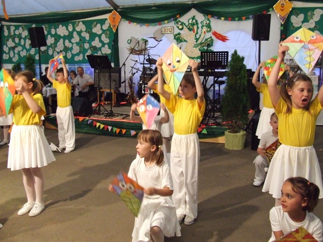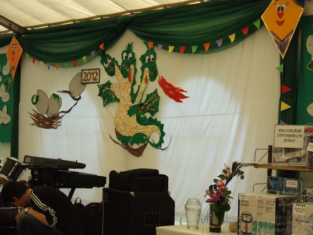 120531szlovakKinek mit hoz a sárkány éve? A Szlovák Általános Iskola, Óvoda és Diákotthon alapítványának szerencsét, annak ellenére is, hogy báljuk 13. alkalommal került megrendezésre az intézmény udvarán felállított sátorban, ahová több ízben is különféle sárkányok törtek be. Igaz, hogy 2012 a sárkány éve, de ki gondolta volna, hogy ily módon elszaporodnak ezek a rusnya párák? 553 szemtanúja volt  a nagy jelentőségű eseménynek, többek között Kraszlán István – a Nemzeti Erőforrás Minisztériumának osztályvezetője, Babák Mihály  országgyűlési képviselő – Szarvas polgármestere, Sinka Imre Békésszentandrás polgármestere, Fuzik János az Országos Szlovák Önkormányzat elnöke, Pecsenya Péter – Békés megye szlovák önkormányzatának elnökhelyettese, Mótyán Tibor a szarvasi szlovák önkormányzat elnöke, Závoda Ferenc megyei képviselő, Melis János jegyző, Besenczy Zoltán, Földesi Zoltán, Gombár Györgyné, Lohr Gyula képviselők, Frankó Pálné, az alapítvány kuratóriumi elnöke is látták, amint először csak ártatlan papírsárkányok kavarogtak az első osztályosok műsorában, majd szelvényes testével, félelmetes fejével a szórakozni vágyó tömeg közé hömpölygött a 7. osztályosok fenevadja.