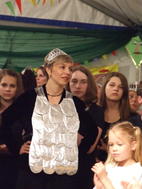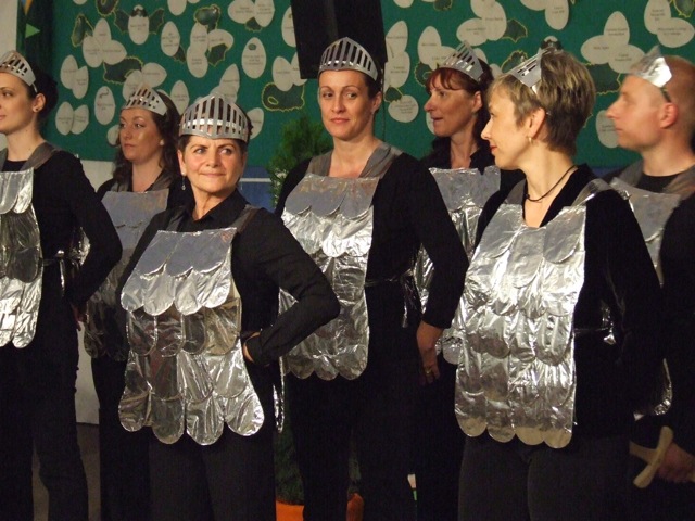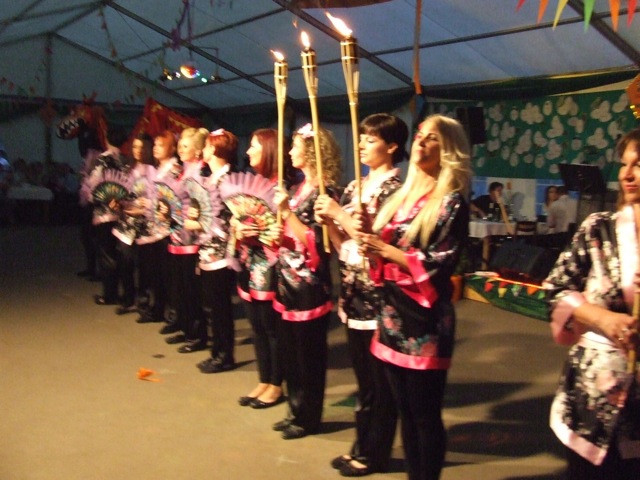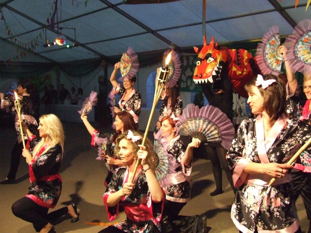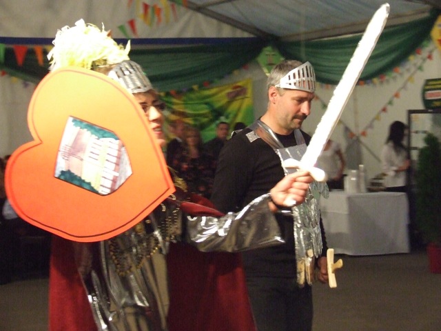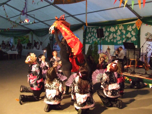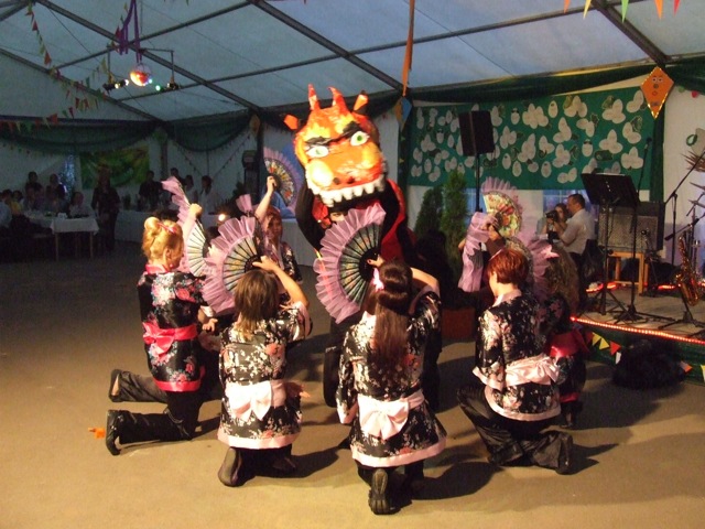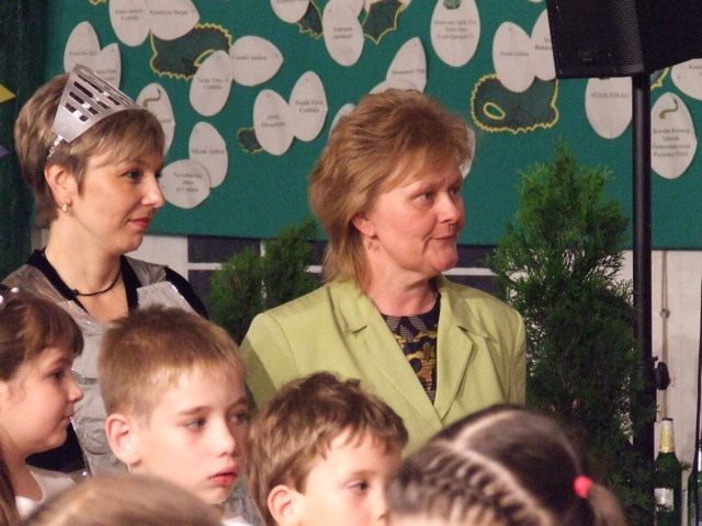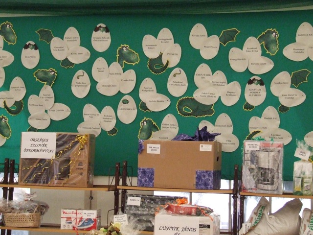 Megvillantotta foga fehérjét és már át is adta a helyét a szülők műsorában szereplő gyíkszerű tüzes lénynek, ami azonnal megszelídült, amint az anyuka gésák delejes táncukba kezdtek. Biztos, ami biztos alapon a tanári kar hadsereggel indult a hétfejű ellen, aki ráadásul egy magas toronyszobában rabságban tartotta a „hadvezér” Medvegy Pálné igazgatónő szőke hajkoronájú „hitvesét”. Félelmet és tétovázást nem tűrő módon tettel és „DSZT” jelszóval végezték ki zöld jószágot. DSZT, ami egyaránt jelenti a döntés, szorgalom, tudás hármas egységét és a diák, szülő, tanár páratlan összefogását is. Fuzik János a fenntartó részéről tartott nyitóbeszédében elmondta, hogy régen érezte magát ilyen jól ennyi sárkány között ami nem is csoda, hiszen a kínai sárkányok a szerencse, a bölcsesség és az életerő megtestesítői.  A vendégek között is helyet foglalt néhány dekoratív sárkány és tanonc is, azonban kilétükről csak a férjek tudnának pontosabb információkat adni. Az alkalomhoz illő meglepetéssel kedveskedett az alapítványi bálon városunk polgármestere, aki valamennyi résztvevő számára kínai evőpálcikákat ajándékozott. Kivilágos pirkadatig szólt a zene, társalogtak és mulattak egymással a baráti est résztvevői, akik a köszönet virágaival búcsúztak el a szülői munkaközösségben 12 éve igen aktívan tevékenykedő Janurik házaspártól, mert ikergyermekeikkel együtt elballagnak.