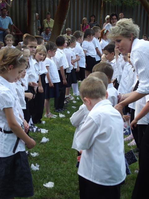 A műsor végén Zsuzsa igazgató néni a jelképes kapun bevezette a lurkókat az „iskolába”.