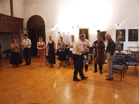 Aki a pénteken délután négykor kezdődött Corini-kiállításon alaposan megnézte a festményeket, az a ligetből kényelmes sétával épp elérte a délután hatkor kezdődő koncertet. Czettner Vera a koncert konferansziéja kezdetnek hűséges hallgatóikat dicsérte, akiknek kitartása nélkül talán idén nem is lett volna zenei tábor Szarvason. Szerencsére azonban a kitartó hallgatók mellett a támogatók is hűségesek voltak a Kelevölgyi Kamrazeni Stúdió kurzusához és vendégtanárnak sikerült megnyerni Koó Tamást a Nemzeti Filharmonikusok vezető csellistáját, így minden adott volt a jó hangulathoz és a munkához. A körülmények ecsetelése után aztán a zenéé volt a főszerep, egymás után csendültek fel a különféle kamaraművek, sőt most két szóló is szerepet kapott. A Mozart-blokkban hallhattunk egy szarvasi-csemegét is: a Várnagy család és Tatai Nóra zeneakadémiai énekes növendék előadásában egy áriát. A közönség elismerő tapsokkal jutalmazta a fellépőket, a Czettner-Várnagy házaspár pedig virággal, borral köszönte meg a Művészeti Iskola igazgatójának Brachna Irénnek, a Tessedik Múzeum igazgatójának, Roszik Zoltánnak, vendégtanáruknak Koó Györgynek és dr. Dezső István főszponzornak a táborhoz nyújtott segítséget. Akik a koncertet követően még kis beszélgetésre adták a fejüket, azok rövid séta után a Vízi Színházban megnézhették az Experidance előadását, s elmondhatták magukról, hogy a képző-, zene-, és táncművészet terén egy tartalmas délutánt/estét kaptak Szarvason.