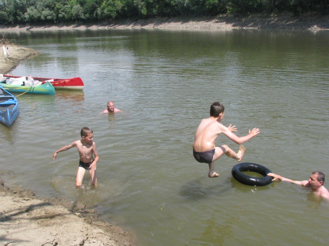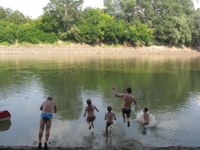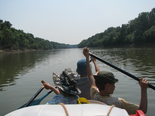Megvolt az oka óvatosságra, hiszen három kenuban 10 személy, öt felnőtt és öt gyerek, három nemzedék vágott neki az útnak. A felnőttek ugyan gyakorlott túrázók, végigevezték a Hármas-Köröst és holtágait, a Tisza magyarországi szakaszát, ketten még a Duna hazai szakaszát is, a gyerekek azonban 9-15 évesek, gyakorlatlanok a hosszú távú evezésben.