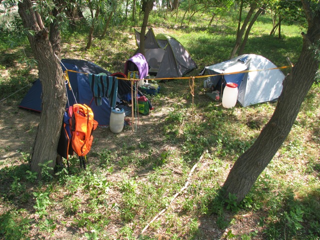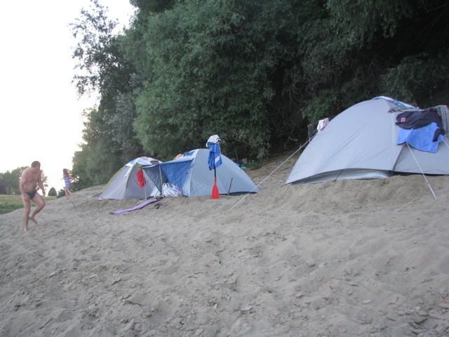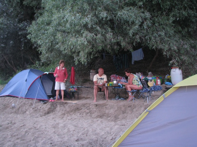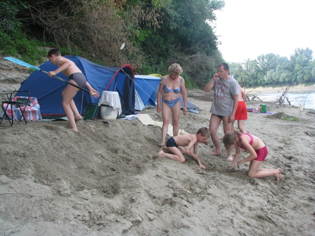 Másnap kiderült, hogy csak Tiszakécskén van megfelelő táborhely. A várossal szemben egy homokdombon vert sátrat a társaság, nagyjából úgy, ahogy a korábbi homokos parton. Itt azonban már az árnyas fűz alatt „éléskamrát és konyhát” is építettek.