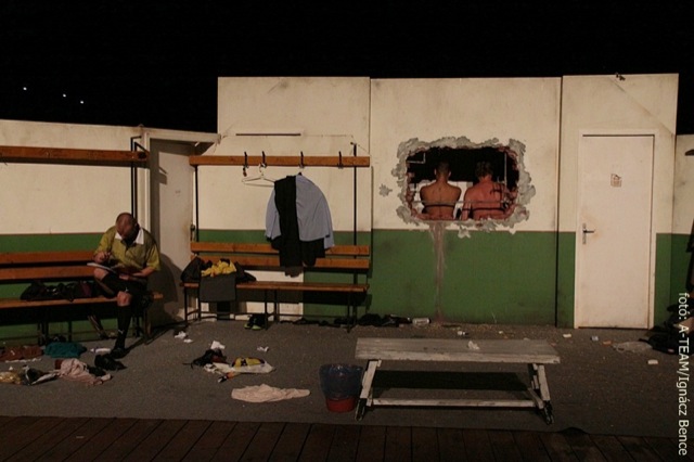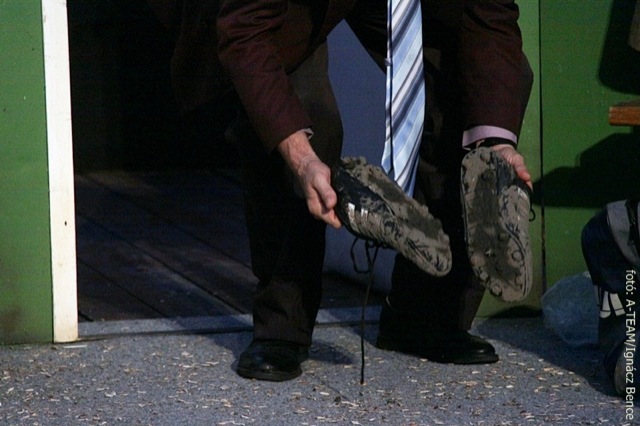 Három remekül megírt karakter, három remek színész. Bartus Gyula zseniálisan hozta „Szappan” figuráját szerepe szerint be nem állt a szája, szinte sütött a figura negatív kisugárzása. Gulyás Attila sportos, önimádó, piperkőc bírója telitalálat volt. Csomós Lajos esendő, szerelmes, rendetlen figurát játszott, akinek nem túl sok szöveg jutott, de színpadi jelenléte, csetlése, botlása, fájdalma végig jelen volt a színpadon. Úgy játszottak, hogy egymásnak adták a labdát. Csapatjáték volt a javából.