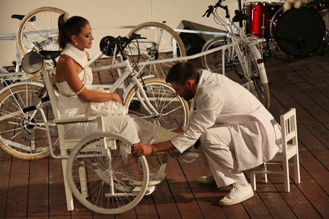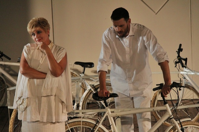 A főszereplő Alceste-t alakító Makranczi Zalán, a barátját alakító (Philinte) Jászberényi Gábor, és Szinetár Dóra Celiméne alakítása nagyszerű volt. Makranczi Zoltán egy jelenetben úgy dobta el a mackót, hogy nyilván eszébe sem jutott, hogy a mackó nem áll meg a színfalak mögött, és valószínűleg a Körösbe került. Szinetár Dóra a végén igazi könnyeket csalt elő szeméből, de mindketten, amikor felemelték hangjukat, annak éle és jelentősége volt. Jászberényi Gábor Philinte-ként barátját féltve, próbálta a helyes mederbe terelni, de erőfeszítései nem jártak sikerrel, nagyon jó alakítás volt. Ő volt az is a közönség felé néha „kikacsintva” tompította a történet komorságát. Jó volt a két ellenfelet játszó Kóti Helga a barátnő-ellenség és Perjés János Oronte szerepében, Céliméne szeretve és Alceste ellenlábasaként (aki barát akart lenni, de Alceste nem akarta ezt a barátségot). Meg kell említeni az élőzenét, akik közreműködtek beleépülve a darabba az állandóan jelen lévő dobos (szerintem, de lehet, hogy tévedek, mert sehol nincs kiírva) Bori Tamás rendező, zenei vezető, a harmonikán játszó Szabó Ádám, a gitáron játszó Kutik Rezső és néha erősítéskén a szintén gitáron játszó Jászberényi Gábor.