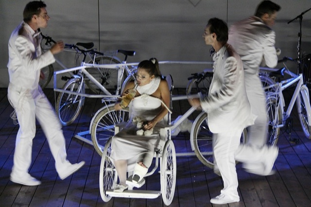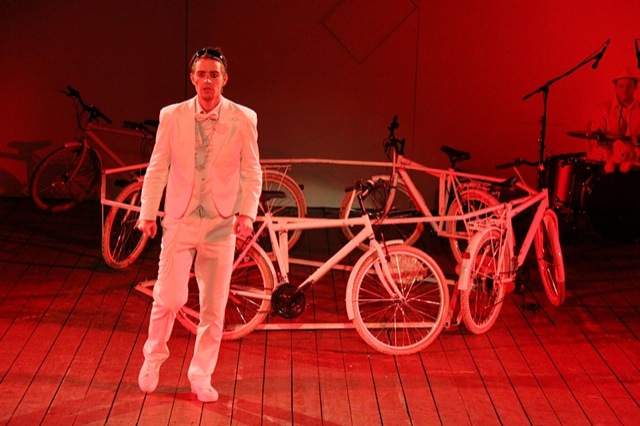 A mizantróp jelentése embergyűlölő, emberkerülő. A darabot Moliére 1666-ban írta, sokak szerint az író maga a Mizantróp. A darab Petri György fordításában és Quimby (Kiss Tibor) dalainak felhasználásával Bori Tamás rendezésében került színpadra. A történet szerint az emberek nem értik Alceste-et őszintesége, szókimindása miatt. Azt kérdezik: „bóhóc ez vagy beteg?” Barátja Philinte orvoshoz küldi, szerelme Céliméne azt kifogásolja, hogy nem úgy szereti, ahogy szeretni kellene. A szerelmes Éliante azt mondja: „Igen különc és fura, és mégis rendkívüli figura: abban, ahogyan mindent kihegyez, van valami nemes és hősies. Valami olyan ritka tisztaság, amit már alig ismer a világ.” Alceste álarc nélküli ember, ezt jelképezte az is a darabban, hogy, amíg minden szereplő arca fehérre volt festve, Alceste arcát a darabban törli tisztára, ami jelzi azt is nem vállal közösséget a többiekkel. Hogy miért vívja szélmalomharcát? Mert hazug, képmutató, korrupt világban nem akar élni. De létezik-e világ kompromisszum nélkül? A darab végére Alceste magára marad, és magára marad Celiméne is, aki azt a megoldást választotta, hogy a barátai háta mögött mondta el véleményét, ami a barátok tudomására jutott. Itt persze kellet valaki, aki mindezt kijátszotta, ez Arsinoé volt, aki Celiméne barátnője volt, de szerelmes volt Alceste-be, és Celiméne-t gyűlölte azért, mert Alceste Celiméne-t szerette és nem hitte el, hogy Celiméne is szeretti Alcestet. (Micsoda kettősség, barát és ellenség egyben.) Arsinoé az, aki kipakolja a lapokat ezzel barátból ellenséggé válik,ő Celiméne vesztét okozza, míg Oronte Alceste vesztét készítette elő. Ennek ellenére Celiméne nem vállalja a magányt Alceste-el, de a történtek miatt Ő is magára marad. A darab története dráma, az előadás mégis mulatságosan tart görbe tükröt elénk. A rendező nem akart „komor képet festeni”. „Én viszont egy olyan előadást szeretnék alkotótársaimmal létrehozni, amelyben ezeket a kérdéseket úgy járjuk körbe, hogy közben merünk röhögni magunkon” írja Bori Tamás rendező.