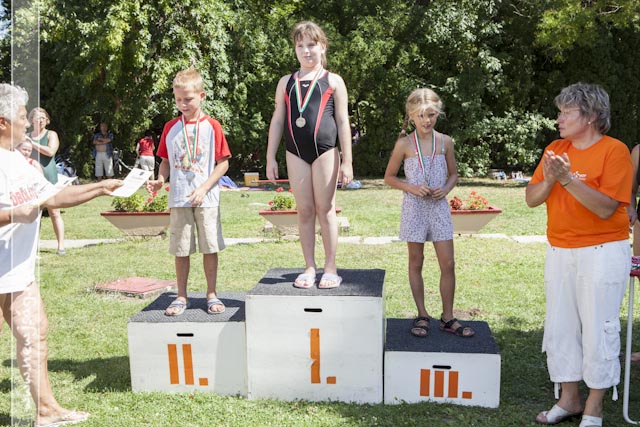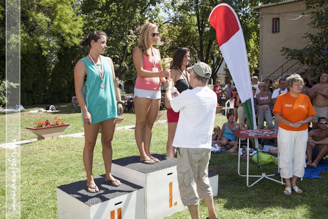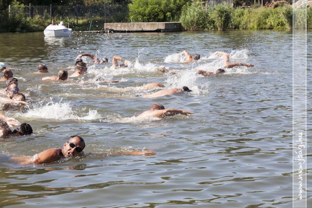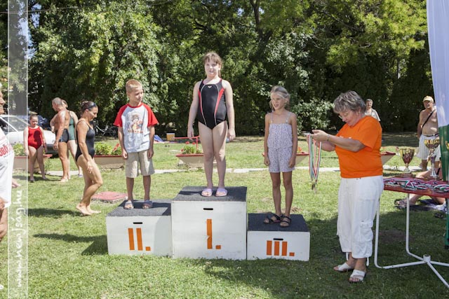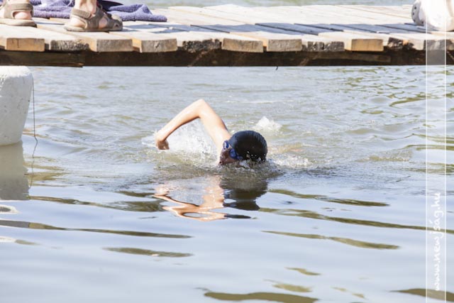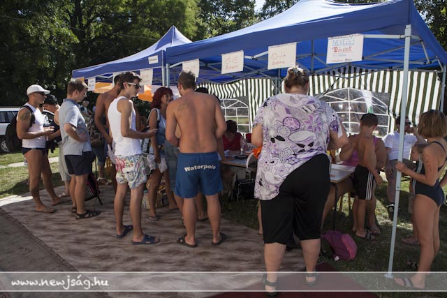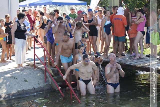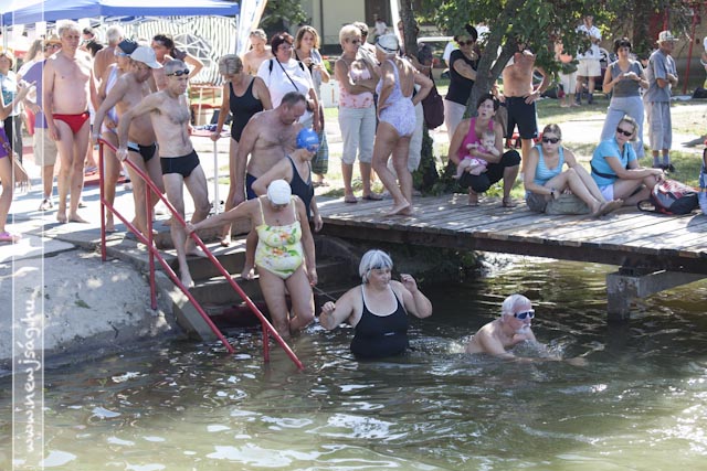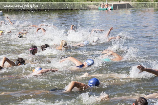 A 27 településről összesereglett mezőnyt három részletben indították útnak a szervezők az önkormányzati üdülő elől. Pontban 10 órakor a kétezres férfiak startoltak el, majd a fiatalabb generáció tagjai következtek, legvégül pedig az idősebb korosztályok képviselői csobbantak vízbe. Leggyorsabban a szarvasi Nagy Noémi ért célba, akinek 13 perc 22 másodpercre volt szüksége az ezer méteres táv megtételére. A SZUSE kiválóságát folyamatosan követte a többi résztvevő, így 11 órára valamennyi induló a parton volt. 50 méteren az óvodásoknak és a 10 évnél fiatalabbaknak külön versenyt rendeztek, itt 5 fiú és 5 lány szelte a habokat. A kategóriánkénti legjobbak éremdíjazásban részesültek, emellett a szokásos vándorserlegek is gazdára találtak. Érdekesség, hogy a mezőtúri Szabó Éva harmadszor is legjobbnak bizonyult a 20–29 éves hölgyek között, így a Simonné Szöllősi Magdolna-emlékserleg végleg a birtokába került, a család pedig jövőre új kupát ajánl fel.