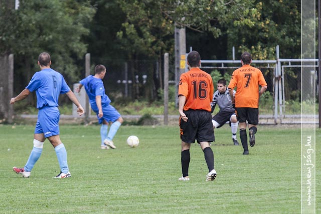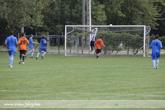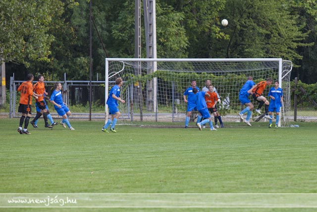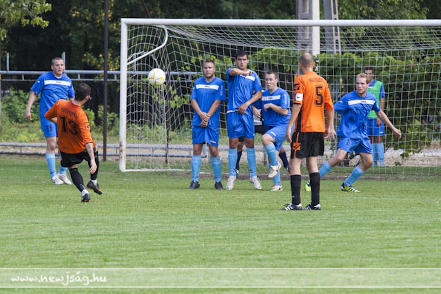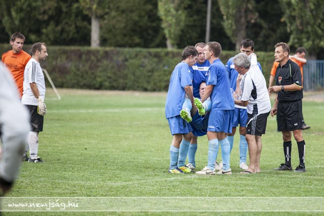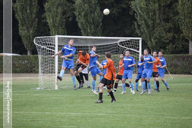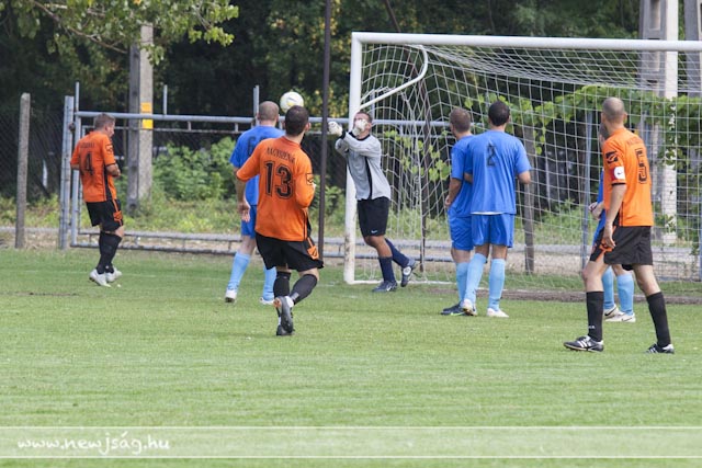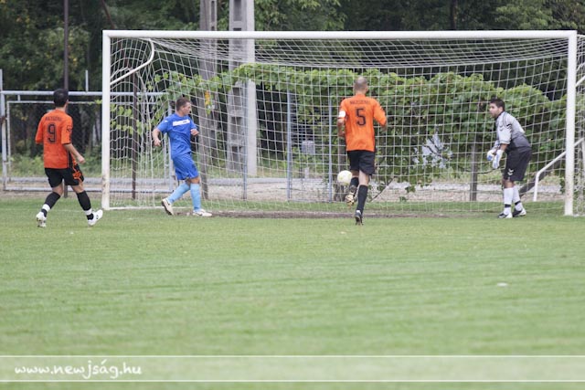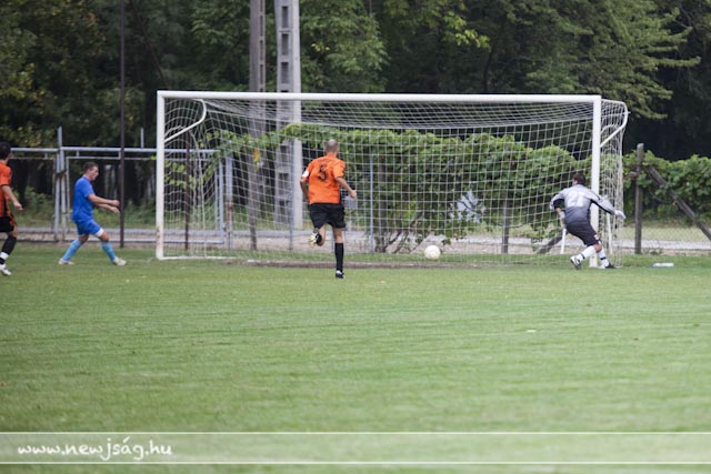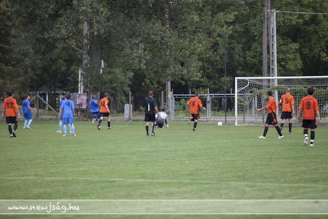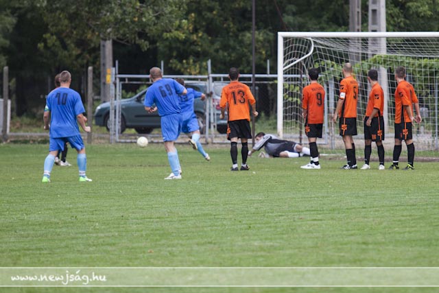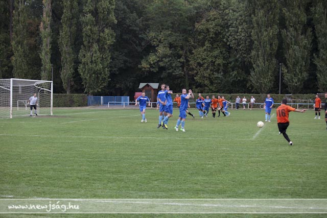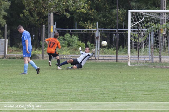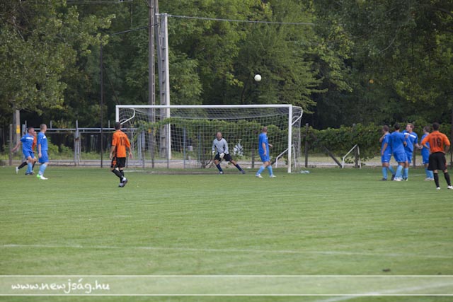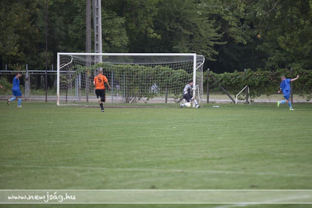 A kilencedik percben a szerencse mentett meg minket az első góltól, amikor a kapura tartó labdát Tatár kapus szemmel követte, majd egyszer bevillant, hogy ő a háló őre, és megindult. Szerencsére a labda, ha kicsivel is, de elkerülte a kaput. Sajnos a 13. percben nem volt ekkora szerencsénk. Vészkapusunk egy szabadrúgásnál rosszul állította fel a sorfalat és rosszul is helyezkedett, így a nagyszénási ítéletvégrehajtó átcsavarta felette. 0:1. A nagyszénásiak ekkor stílust váltottak, és elkezdtek egy kicsit nagyképűen focizni. A hazaiaknak nem okozott lelki törést az, hogy hátrányban vannak, és talán ez lett a siker kulcsa.