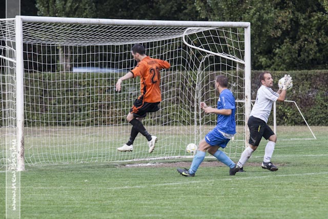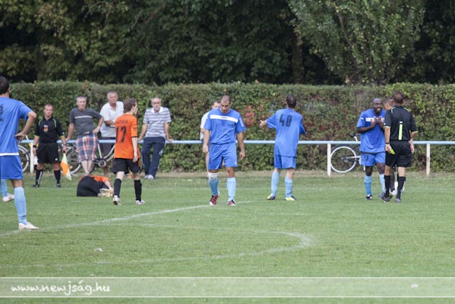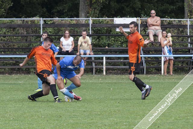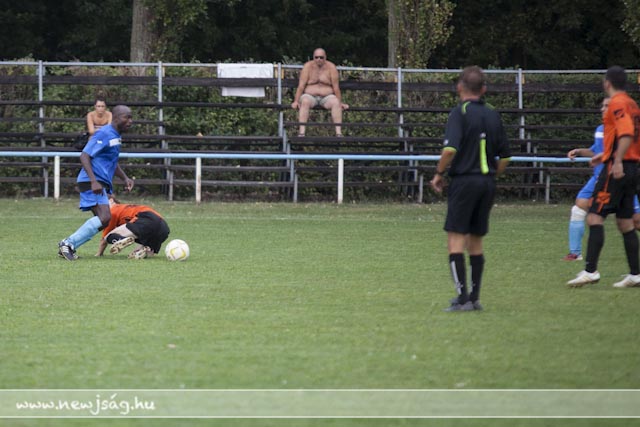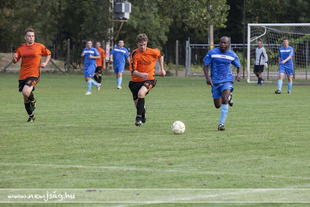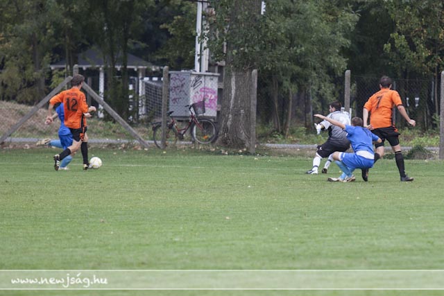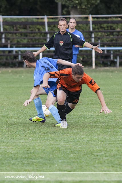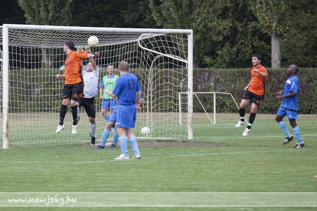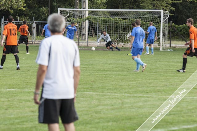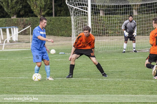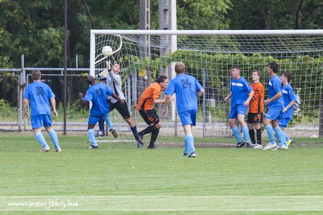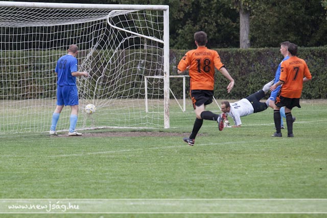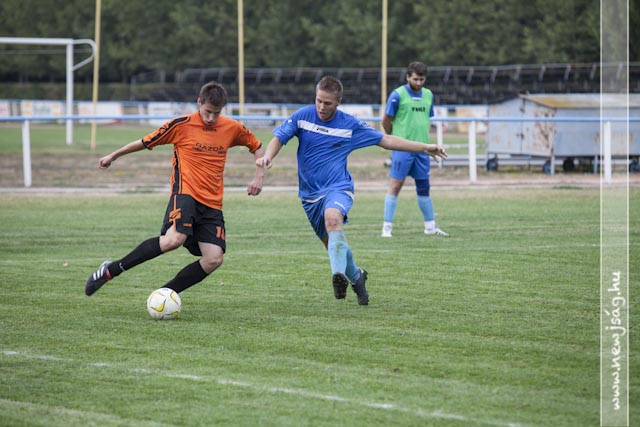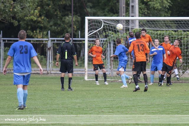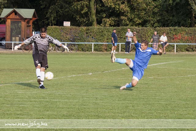 A kilencedik percben a szerencse mentett meg minket az első góltól, amikor a kapura tartó labdát Tatár kapus szemmel követte, majd egyszer bevillant, hogy ő a háló őre, és megindult. Szerencsére a labda, ha kicsivel is, de elkerülte a kaput. Sajnos a 13. percben nem volt ekkora szerencsénk. Vészkapusunk egy szabadrúgásnál rosszul állította fel a sorfalat és rosszul is helyezkedett, így a nagyszénási ítéletvégrehajtó átcsavarta felette. 0:1. A nagyszénásiak ekkor stílust váltottak, és elkezdtek egy kicsit nagyképűen focizni. A hazaiaknak nem okozott lelki törést az, hogy hátrányban vannak, és talán ez lett a siker kulcsa.