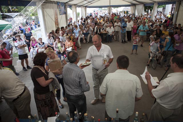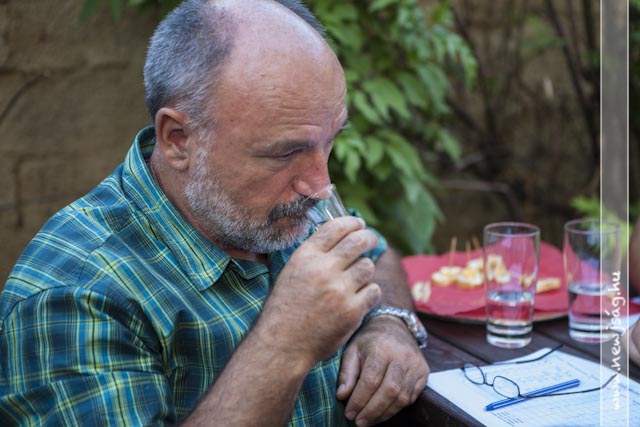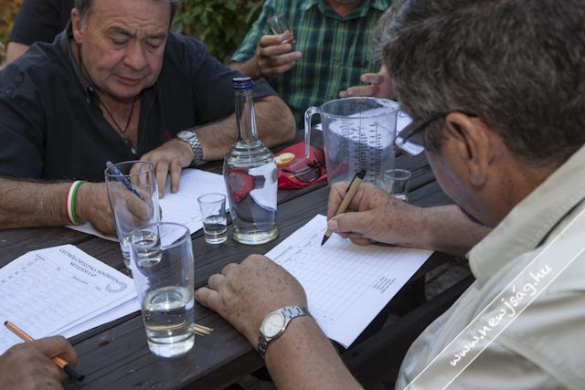 120911palinkaMinden Szilvanap egyik legfontosabb eseménye a pálinkaminősítés. Így volt ez az idén, a XV. alkalmával is. Ahogy a korábbi években, most is meglátogattuk a pálinkaminősítés zsűrijét, ami az utóbbi két évben a Granárium udvarán ült össze. Számító látogatásunknak egyáltalán nem az önzetlen tájékoztatás volt a célja. Hanem a tanulás. Na meg a kóstolás. Tanulmányaink során megtanultunk ilyen kifejezéseket, hogy pektinbontás és dekantálás, amik még feldolgozásra várnak. A kóstolásból többet értettük.
