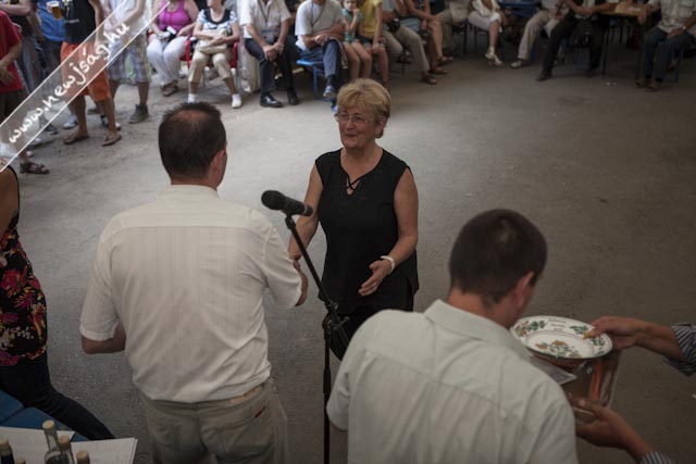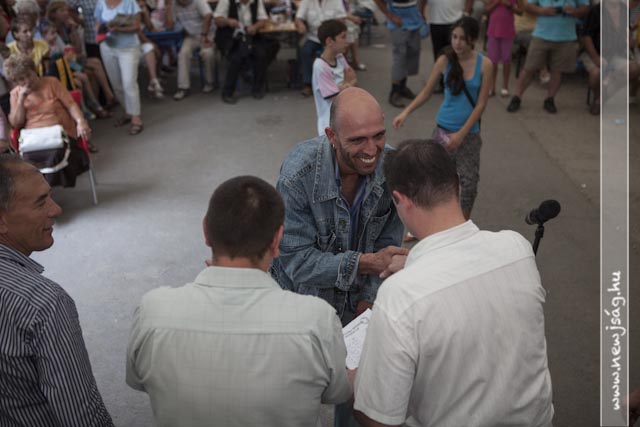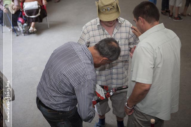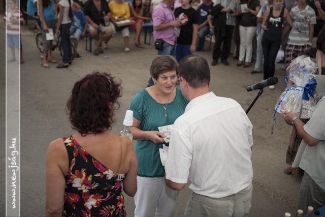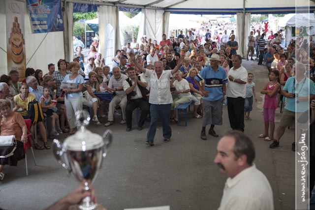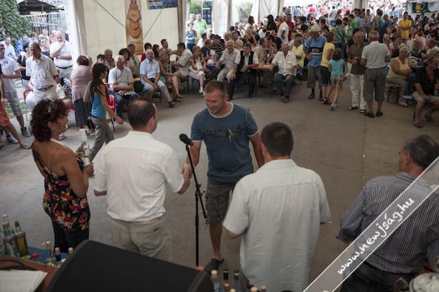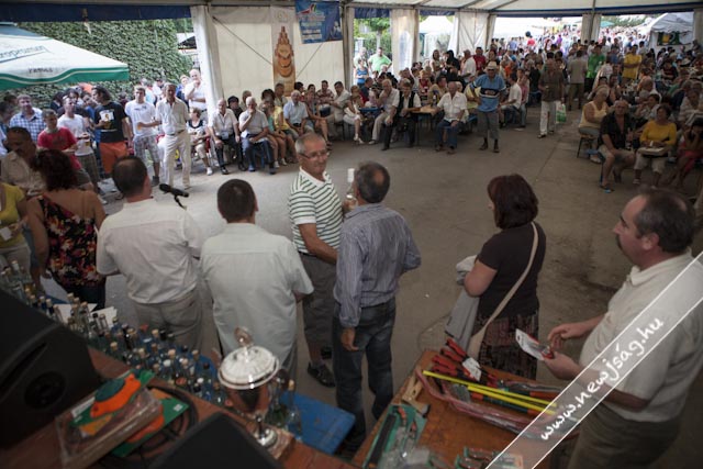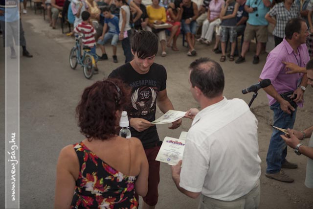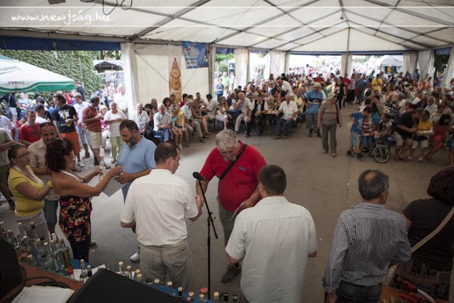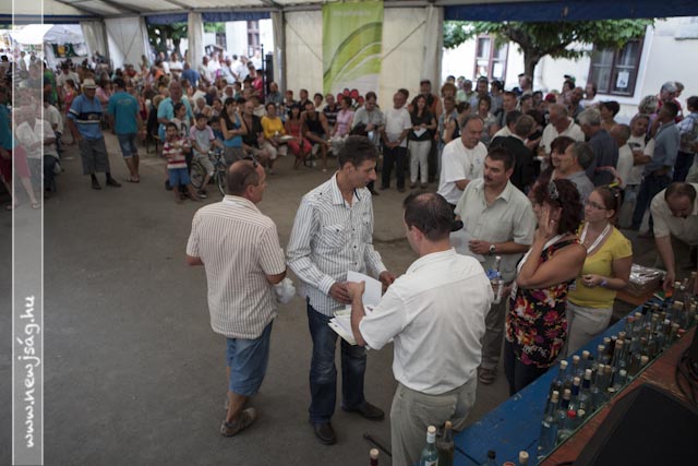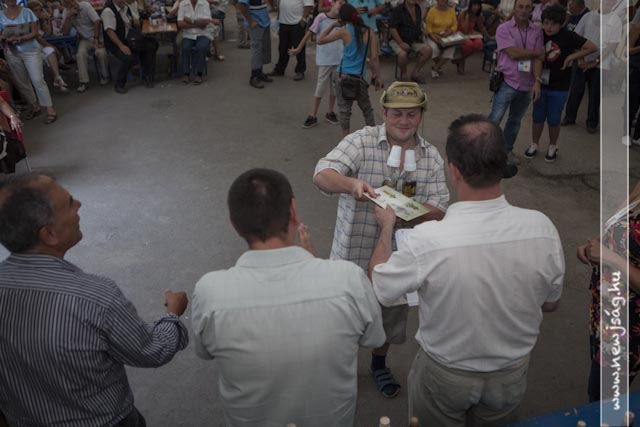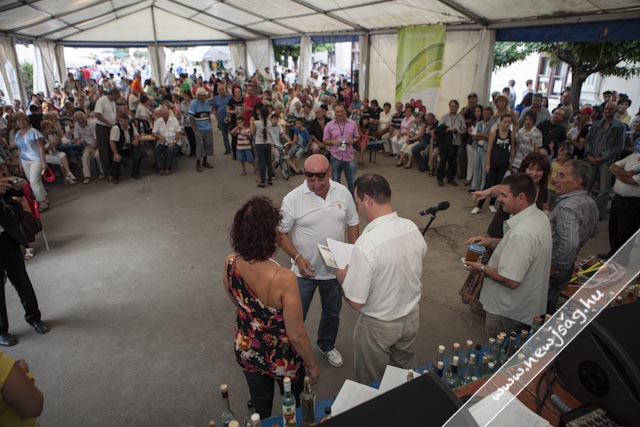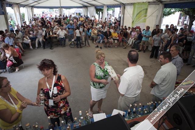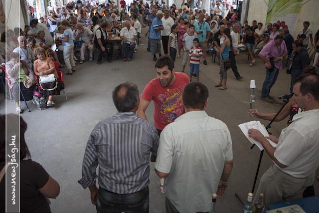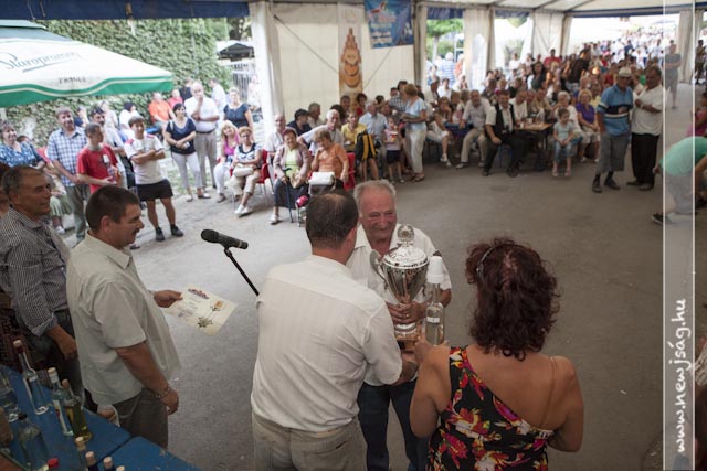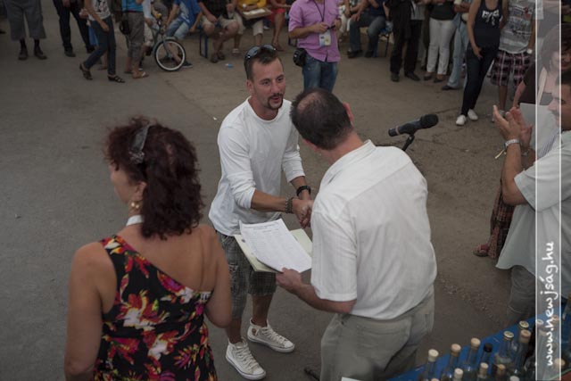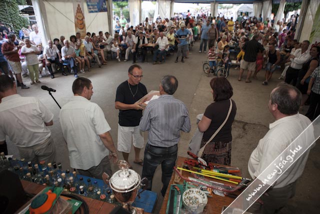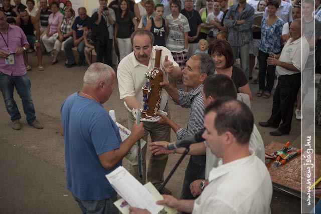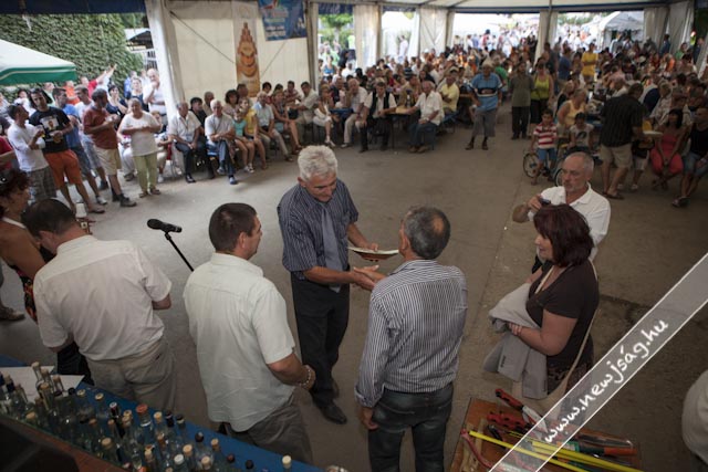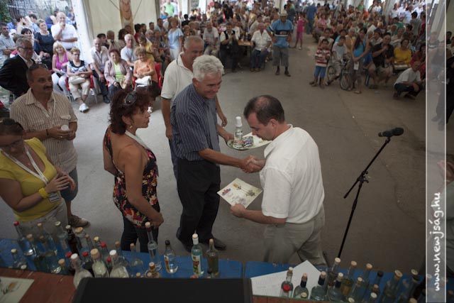 Az eredényhirdetésnél az emléklapot és tárgyjutalmakat vehettek át a minősítettek. A tárgyjutalmak között fűrész és balta is volt, amit az előzetes találgatások alapján a gyengébb pálinkák gazdáinak jósoltunk, a még fogyaszthatóknak fűrészt, az ihatatlanoknak baltát, de nem ez volt a szempont a kiosztásnál. Az ajándékok átadásánál segített az olasz testvérváros, Bucine, delegációjának egyébként már egyáltalán nem szomjas tagja is, aki hangerővel próbálta meg áthidalni a nyelvi különbségeket.
