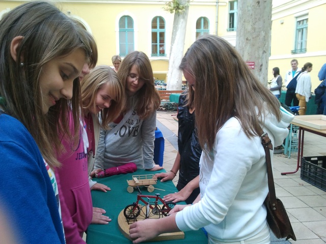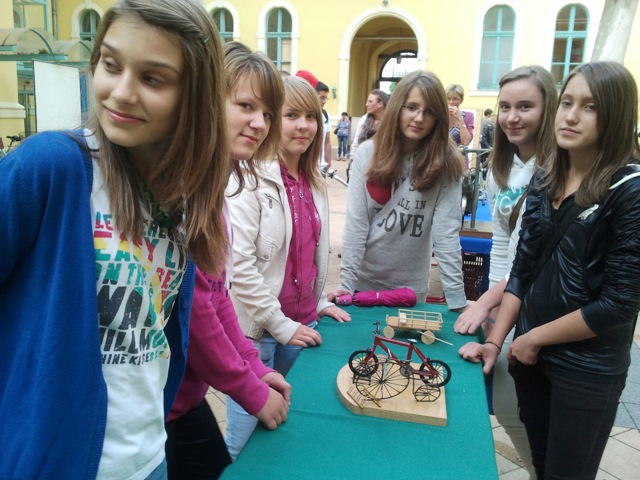 Elsőként a „Technikai alkotások és modelljeik” kiállításon érdekes közlekedési és muzeális technikai eszközöket láthattunk és ki is próbálhattuk.