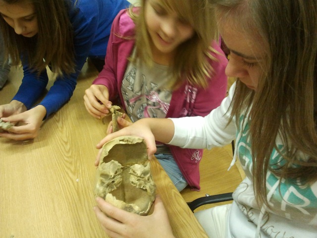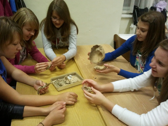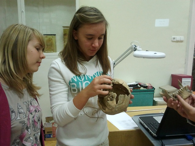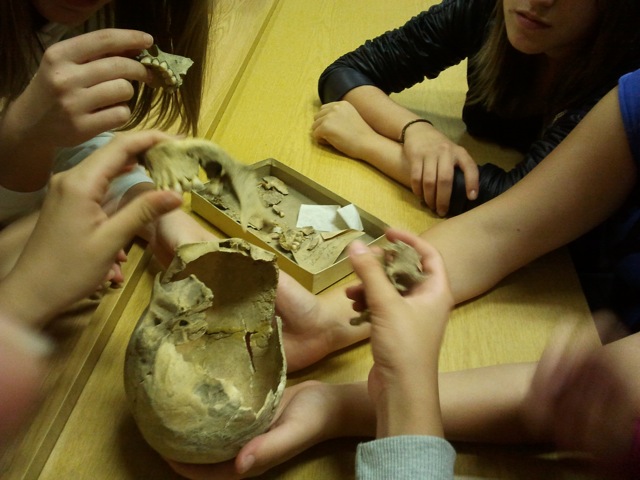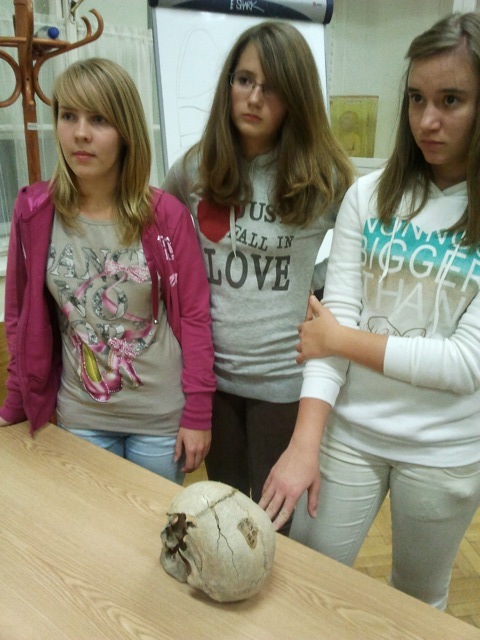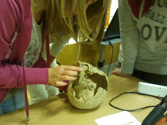 Utunk az Embertani Tanszékre vezetett, ahol a ”Ragaszd meg az ősöket!„ foglalkozáson vettünk részt. Itt lehetőséget kaptunk arra, hogy szakember felügyelete mellett magunk állítsunk helyre törött emberi maradványokat a csontokat nem károsító ragasztási eljárással. Így betekintést nyerhettünk a humánbiológusok napi rutinfeladataiba, a vizsgálati anyag megismerésének és kezelésének a folyamatába. Megtudhattuk hogyan állapítják meg a lelet nemét és életkorát.
