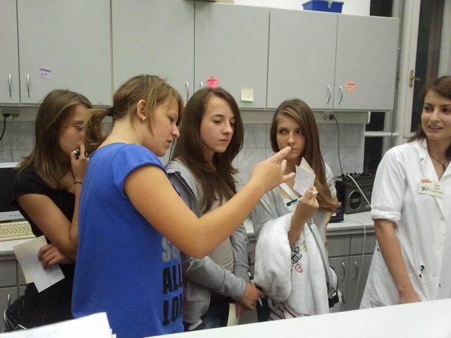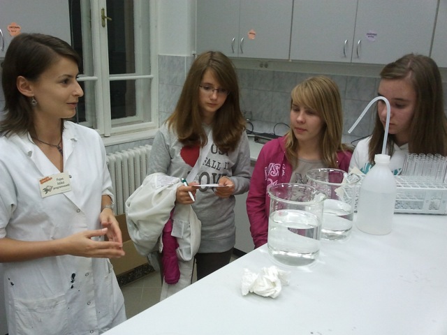 A „Jövőnk talajai – A talajok környezetvédelmi szerepe” című programon laborgyakorlaton vehettünk részt, ahol a talaj szűrő funkciója, a talaj szerepe a felszín alatti vizek védelmében illetve a szegedi talajvizek állapota volt a téma. A kísérleti eredmények tapasztalatait összefoglaló feladatlap kitöltése után a legügyesebbek jutalomban részesültek. Természetesen mi sem tértünk haza üres kézzel.
