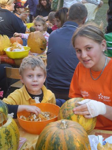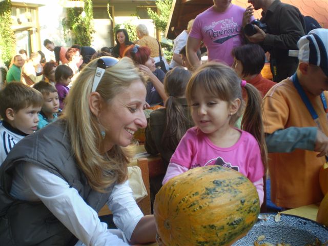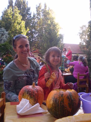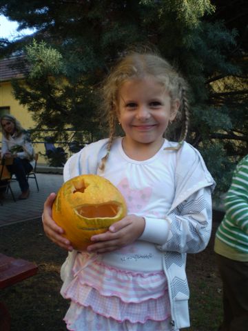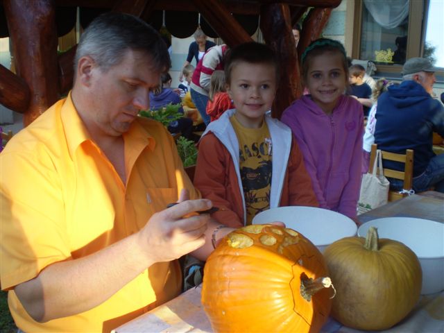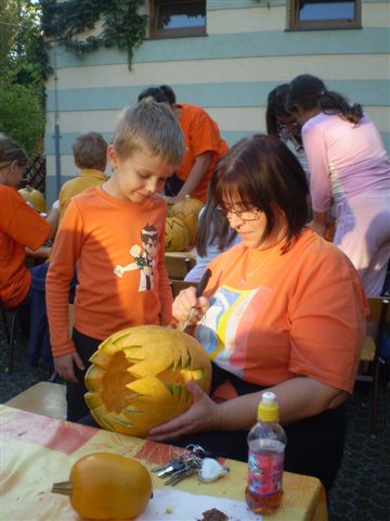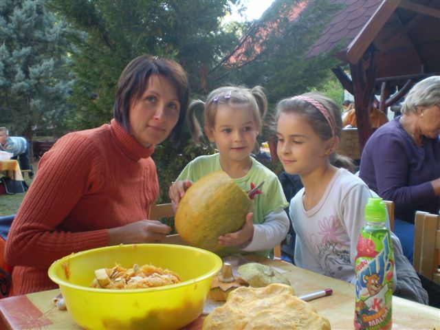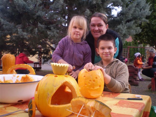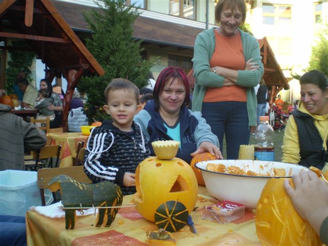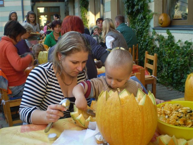 Jubileumi Töknapnak is nevezhetnénk a szlovák óvoda hagyományőrző családi délutánját, melyre szeptember 21-e verőfényes délutánján került sor az intézmény barátságos udvarán, ugyanis idén 10. alkalommal vállalkoztak az óvónénik, gyerekek, szülők és a dajka nénik, arra, hogy kreativitásukat, ügyességüket, gazdag érzelemvilágukat tökbe véssék. A vállalkozó kedvű alkalmi szobrászoknak nem volt kőbe vésett szabályuk arra vonatkozóan, hogy milyen féle-fajta tökbe, milyen módszerrel és milyen figurát jelenítsenek meg a népszerű őszi termésből, így „jófej tökfejek” kerekedtek ki a berajzolós, kanalazós, késsel faragós műveletek elvégzése után. A gyermekek számára bonyolult munkafolyamatok kivitelezéséhez szükség volt szülői segítségre is, avagy nagyobb mérvű családi összefogásra, ahol az anyukák mintát rajzoltak, a gyermekek a tökmagot kanalazták ki, az apukák pedig bicskájukkal hívták életre a megálmodott mintákat. A fáradtságos munka közben üdítően hatott a sütni-főzni kész szülők által elkészített, új ízeket felvonultató és gyakran a reformkonyha asztalán is helytálló sok-sok tökös finomság, amit az óvoda munkaközössége kínált a töklámpásukat lelkesen készítő résztvevőknek.