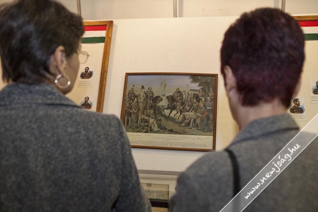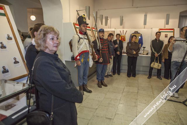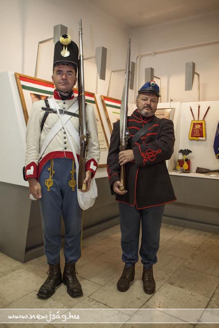 A paravánokon és a tárolókban az 1848-as forradalom megannyi dokumentuma, térképe látható, de ki lettek állítva fegyverek, sőt, egy működő mozsárágyú modellje is. A bábukon és az üvegvitrinekben számtalan korhű egyenruha mindkét oldalról és nemzeti trikolór minden mennyiségben. De egyenruha nem csak a bábukon volt. Két hagyományőrző korhű katonai viseletben pompázott. Egyikük az osztrák császári gyalogezred, a másik a 48-as honvédek egyenruhájába bújt. Ahhoz képest, hogy annak idején az ellentétes oldalon álltak, most jól megfértek egymás mellett, sőt, egy fotó erejéig pózoltak is.