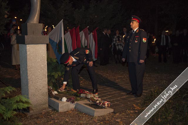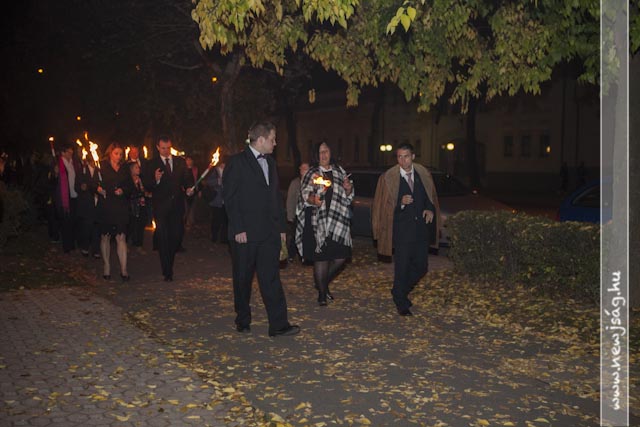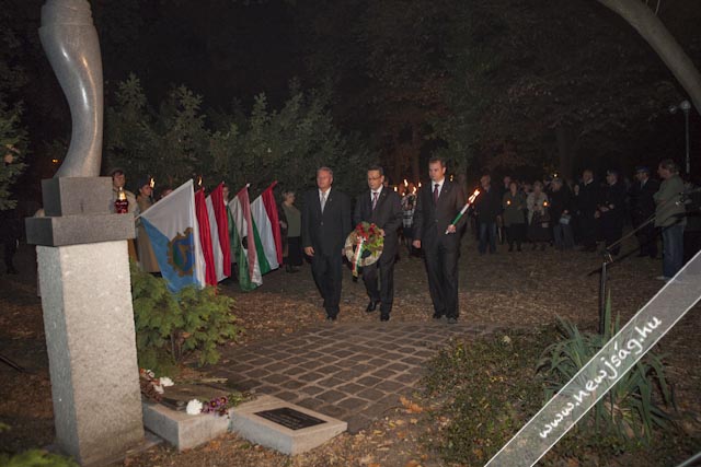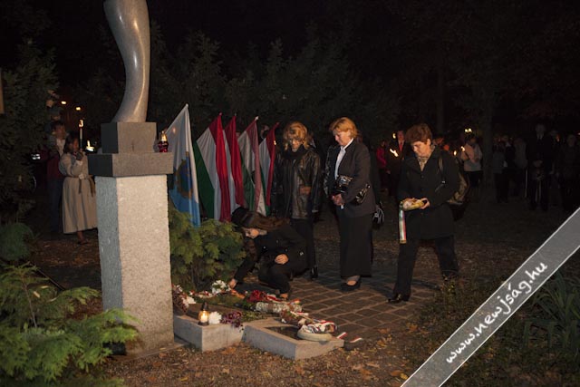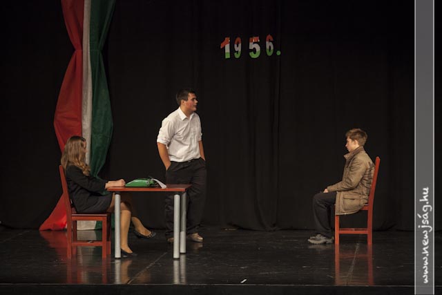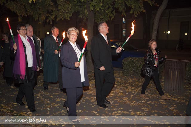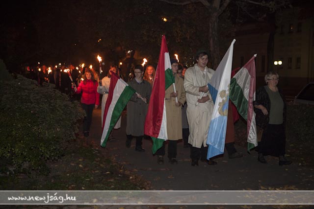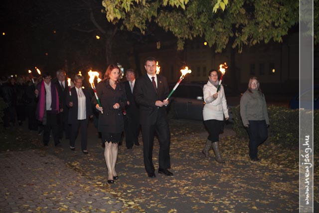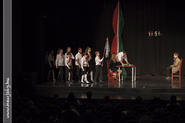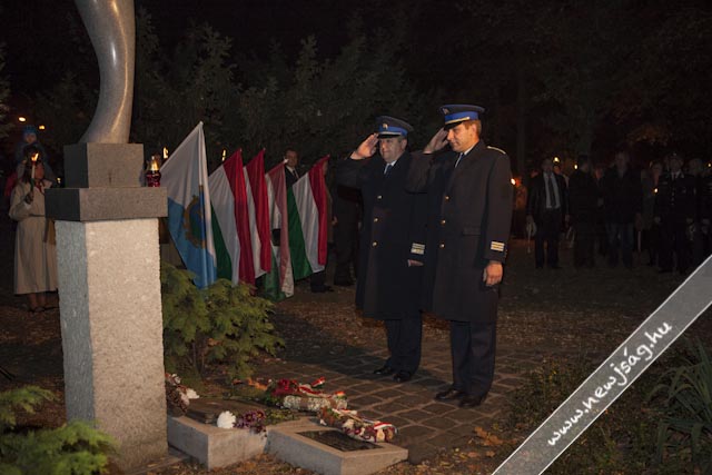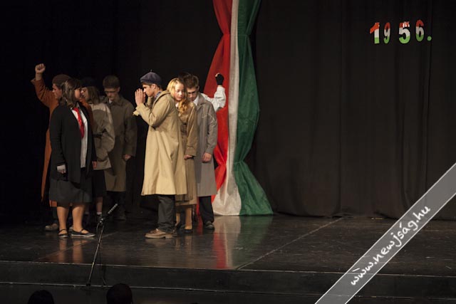 Az idén a Chován Kálmán Művészeti Alapiskola növendékei adták az ünnepi műsort az 56 körüli időkről. Brachna Irén drámásainak előadását a kb. 300-350 fős közönség vastapssal köszönte meg. Ezután az emlékezők fáklyákkal a kezükben az 56-os emlékműhöz vonultk, ahol a szarvasi iskolák, pártok, civilek elhelyezhették koszorúikat.