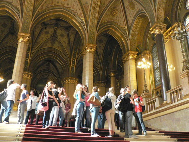 Egy napsütéses pénteki napon landolt repülőgépük a Liszt Ferenc reptéren, ahol tanáraink, Pécsváradiné Tóth Anikó és Dr. Bondorné Kondor Edit fogadták őket. Innen a Parlamenthez siettek, ahol idegenvezető kalauzolta végig a csoportot az impozáns termeken keresztül, miközben megtekinthették a Szent Koronát is.