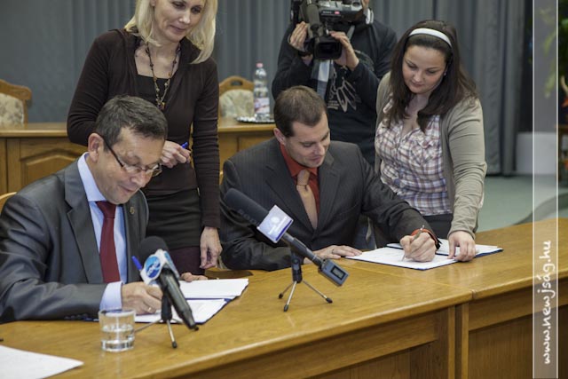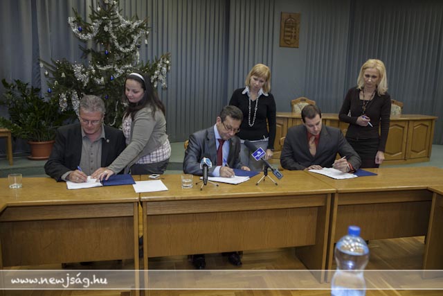 121213oktatasA közoktatás régen is állami feladat volt, mondta Babák Mihály polgármester szerdán, mielőtt dr. Melis János jegyzővel együtt aláírták azt a szerződést, aminek értelmében január 1-től állami fenntartásba megy át a Chován Kálmán Művészeti Alapiskola, a Székely Mihály Intézmény szakképző és szakközép iskolája, a Fő téri általános Iskola és más fenntartótól, de a nevelési tanácsadó is. Az állam részéről az átvételt a leendő Szarvasi Járás tankerületének vezetője, Kepenyes András képviselte. Az intézmények dolgozói januártól a Klebelsberg Intézményfenntartó Központtól kapják majd a fizetésüket. Jelen megállapodás nem érinti az város óvodáit.