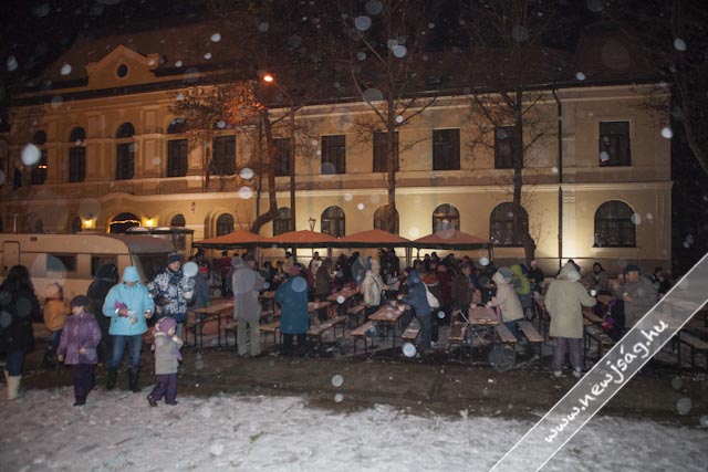 Az ünnepi műsort ezen a napon a Chován Kálmán Művészeti Alapiskola növendékei adták az ünnepi alkalomhoz illő versekkel, dalokkal és egy betlehemessel. Polgármesterünk, Babák Mihály rövid köszöntője után még egy kísérletet tett a világvégtelenségben csalódott negyedik gyertya meggyújtására, – ami korábban már sem a gyerekeknek, sem Seidl Ambrusnak nem sikerült – és ami egy gyermekfilmben már-már a karácsony eljövetelét veszélyeztetné-, de városunk első embere határozott mozdulatokkal hárította el oldotta meg a problémát, így a világvége után négy nappal mégis lesz karácsony.