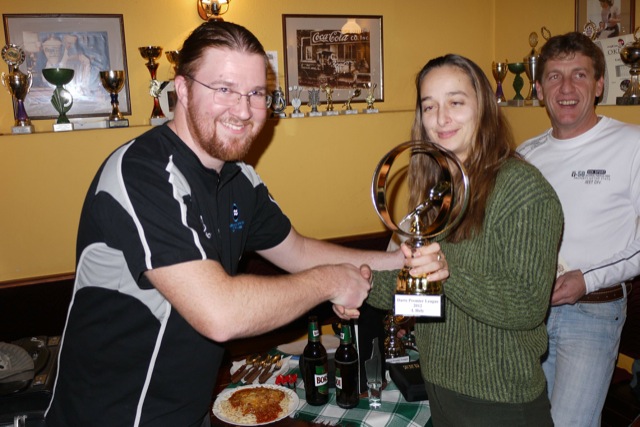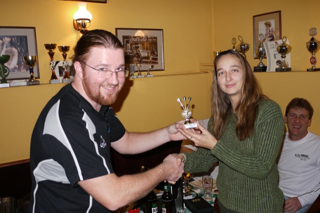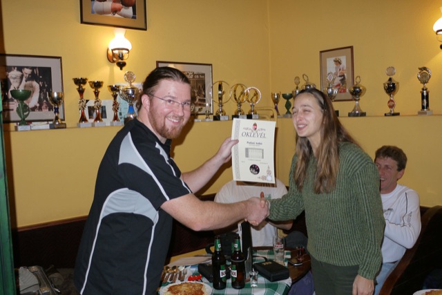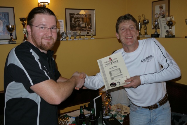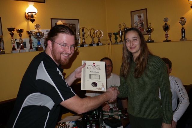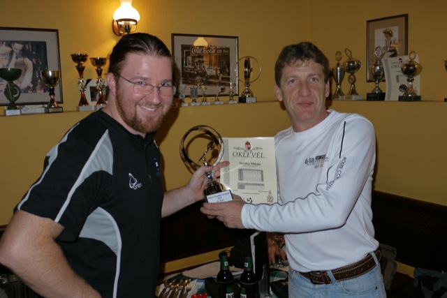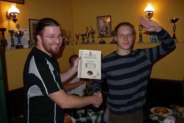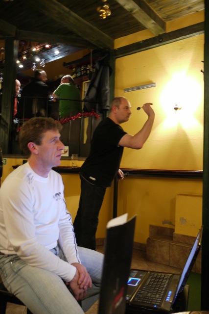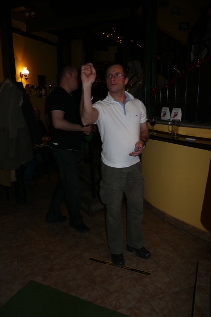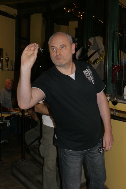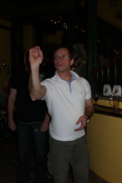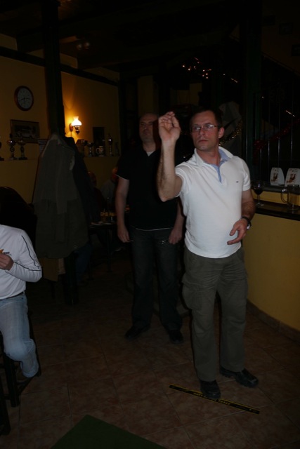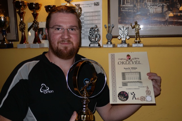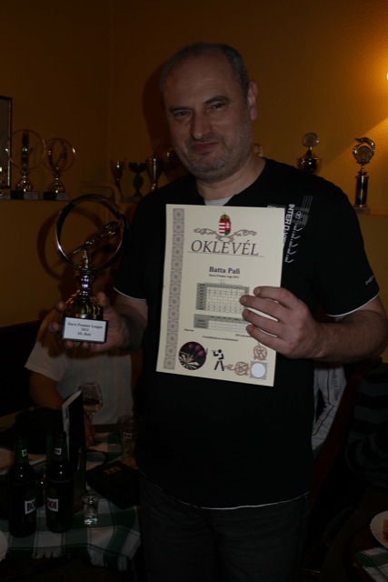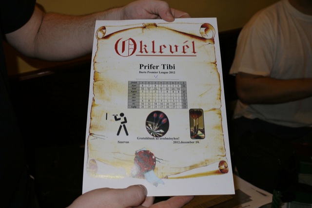 130103darts2012. december 14-én este véget ért a 2012-es Darts Premier Liga Szarvason a Galéria Grill Étteremben. Először Pali és Milán játszott a döntőbe jutásért. Kezdetben fej-fej mellett haladtak, mindkettejüknek gondjai támadtak a kiszállókkal, majd 2-2 után Milán összeszedte magát és több leget nem engedett Palinak, így Milán bejutott a döntőbe a 8-2 győzelmével , Pali pedig a harmadik helyért küzdhetett meg.