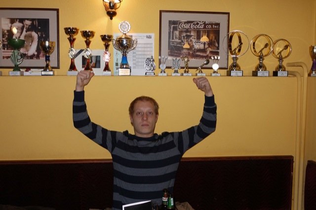 A döntőben az elődöntők nyertesei Misi és Milán a két jó barát küzdött egymás ellen. Kettejük párharca roppant lebilincselő tud lenni, mert mindketten hasonló átlaggal dobálnak, és így egyszer az egyik, egyszer a másik nyeri a játékot. A döntőben most Milán tűnt összeszedettebbnek, stabilan dobott dupláival hamar előnyre tett szert. Misi persze nem hagyta magát és ahogy az lenni szokott élt a lehetőségeivel amikor Milán nagyokat hibázott. Az eredmény hamar 4-2 lett Milán javára, de ebből még nem lehetett megmondani ki nyeri a döntőt. Nagyon szoros legek játszottak, viszont Milánnak jobban mentek a triplák, így hamarabb jutott a duplákhoz, és ezeket megdobva ismét előnyre tett szert. Viszont Misi is szép számmal dobta a triplákat, csak most érezhetően kevesebbet, mint az tőle megszokhattuk. Így a végén Milán nyert 8-4-re.