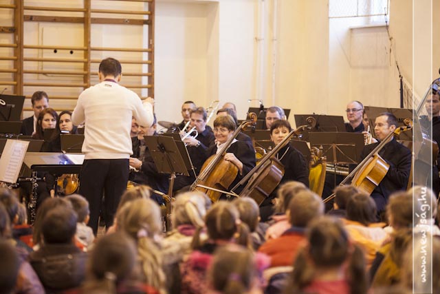 A legalább ötven taggal fellépő zenekar minden tagja komolyan vette a feladatot. Úgy játszottak, mintha nem egy akusztikátlan tornateremben, hanem egy koncerthallban zenéltek volna. A másik fél is teljesítette a rá rótt feladatot, élvezte az előadást. A végén az egyik ovisnak lehetősége nyílt vezényelni a zenekart, így az elismert karmesterek száma Szarvason immár háromra nőtt.