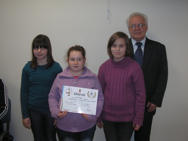 – 2. hely Szlovák Ált. Isk. 1. csapat/ Frankó Fanni, Huszárik Nelli, Oroszki Marietta/ A csapat 1 ponttal maradt le az első helyről.