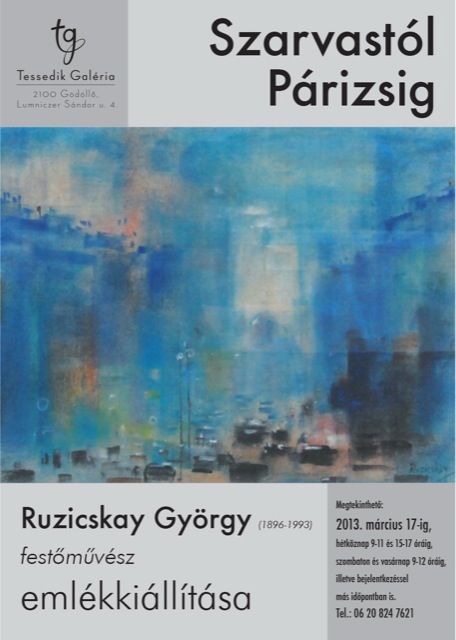 130204ruzSzarvastól Párizsig címmel Emlékkiállítás nyílt Gödöllőn a Tessedik Galériában 2013. január 26.-án. Roszík Gábor evangélikus lelkész – a kiállítás szervezője-, köszöntötte a nagyszámú érdeklődőt a Ruzicskay kiállítás megnyitóján. A kiállítás a művészúr halálának húszadik évfordulójára készült. A nagyszámú helyi érdeklődő mellett szarvasi delegáció és a Szarvas Barátikör budapesti tagozatának képviselői voltak jelen a megnyitón.