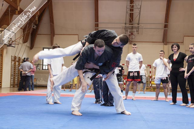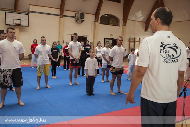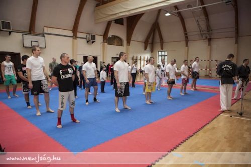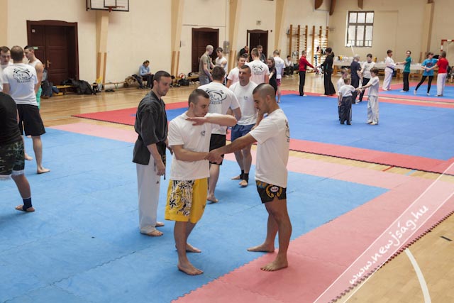 A Fő téri tornatermében elhelyezett három hatalmas tatami megtelt az önvédelem iránt érdeklődőkkel. A jelen levők nagy része le sem tagadhatta, hogy már bírt valamilyen előképzettséggel a küzdősportok terén, de szép számmal jöttek abszolút kezdők is.