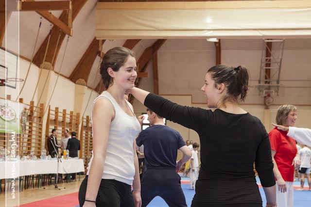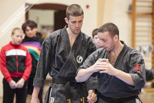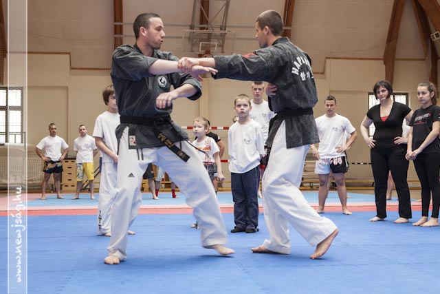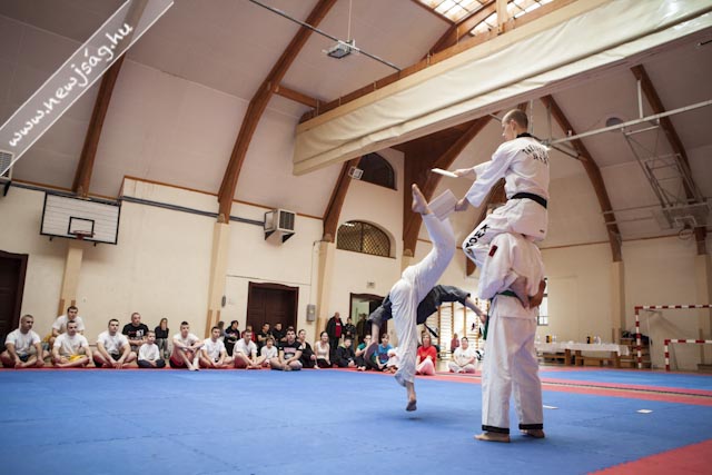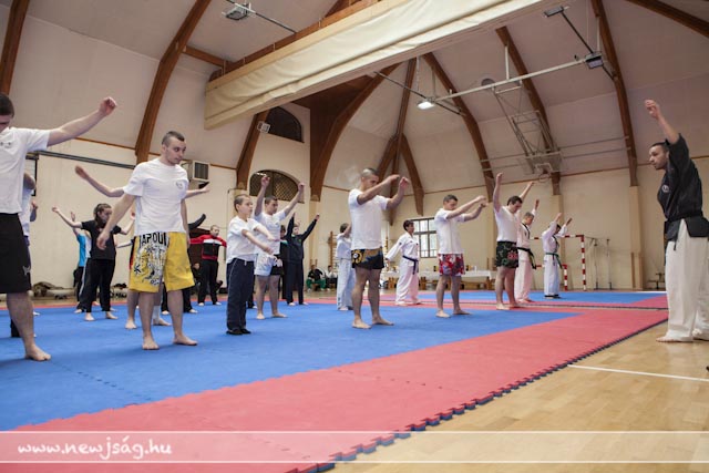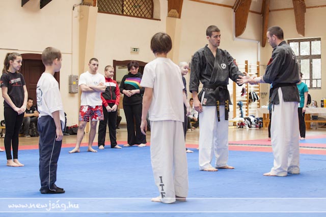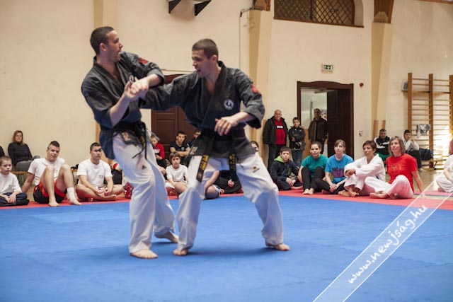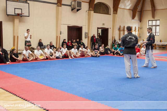 A bemelegítés előtt a Máté testvérek bemutattak néhány látványos elemet, hol egyikük repült, hol a másikuk, ill. a gravitációt meghazudtoló töréstechnikát. A bemutató során szem előtt tartották azt, hogy a nők, ill. a gyengébb fizikumúak, pl. a gyerekek hogyan tudják magukat megvédeni, így több technikán keresztül mutatták be azt, hogyan fordíthatják maga ellen a támadó lendületét, valamint az ízületek feszítésén keresztül történő védéseket. A közös edzés folyamán a segédinstruktorok közreműködésével a jelen levők ki is próbálhatták a technikákat, hogy saját maguk is megtapasztalhassák azok hatékonyságát.