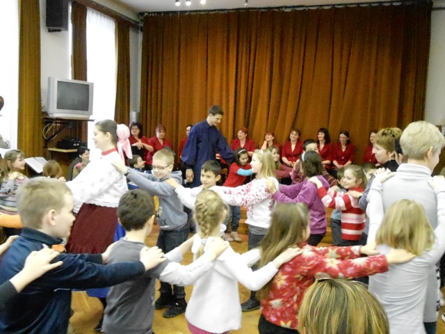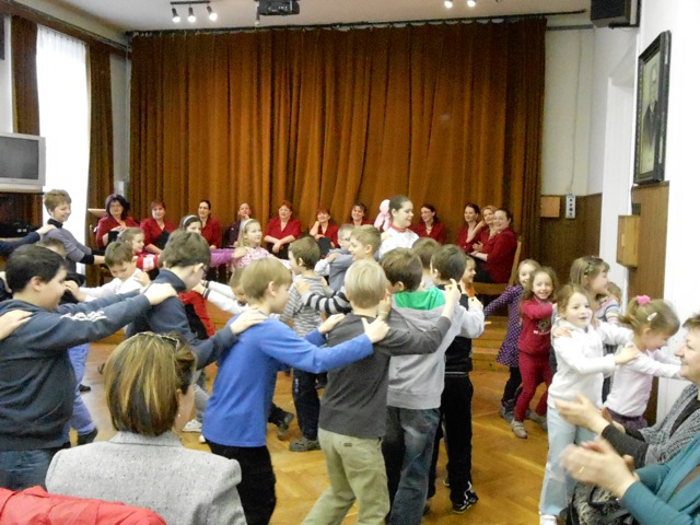 Farsang időszakában szokásos vidám lakomák, bálok, mulatságok, népünnepélyek időszakát idézték a népzenészek a Farsang Széken című műsoruk betétdalaival. A Gergelyjárás hagyományát, az adományok gyűjtését, a tanulók iskolába hívogatását a kórus tagjai elevenítették meg Kodály Zoltán Gergelyjárás c. kórusművével. A Húsvét a keresztény világ legnagyobb ünnepe, Jézus kereszthalálának és feltámadásának emlékére. A húsvéti ünnep hagyományait a Ma van Húsvét napja című dallal hozták még közelebb a számunkra. Április 24-e, Szent György napja a tavasz kezdete, a kikelet ünnepe volt. Ezen a napon hajtották ki a telelő jószágot a legelőre, ekkor szegődtek el a pásztorok, kocsisok, cselédek. Az énekegyüttes Bartók Béla Jószág-igéző kórusművével, a néptáncegyüttes tagjai pedig Somogyi botolóval és párossal tették érzékletessé a gyerekeknek a népi életmód e fontos eseményét. A régiek hiedelme szerint varázslatos volt Szent Iván napján az év legrövidebb éjszakája. Az, amikor szinte bármi megtörténhetett, a kívánságok teljesülhettek. A néphagyományokhoz illően – világszerte – örömtüzeket gyújtottak, melyeknek csodás erőt tulajdonítottak. Ezt a hagyományt láttuk megelevenedni a néptáncosok, valamint a Bárdos Lajos Magos a rutafa c. művének kamarakórus általi tolmácsolásában. Ezt követően természetesen nem maradhatott el a táncház sem, amely valamennyi gyermeket mozgásra és éneklésre csábított.