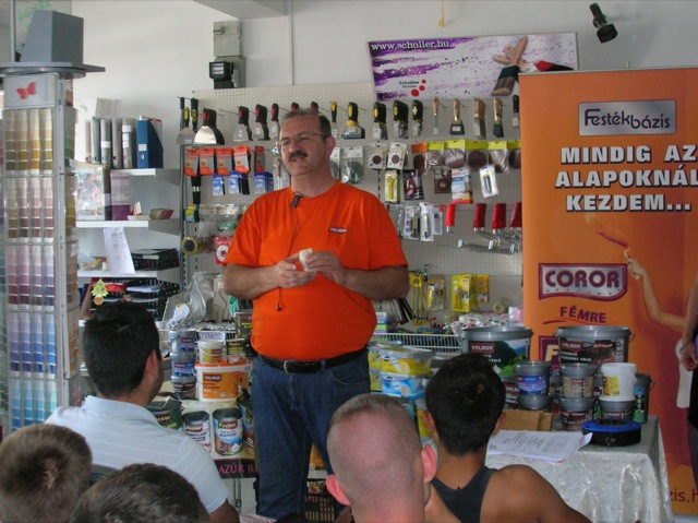 „ Cégünk többnyire speciális festékekkel, bevonatok gyártásával foglalkozik. Célunk, hogy az építőiparban, festékiparban előforduló problémákra megfizethető, szakszerű megoldást tudjunk biztosítani. Fontos, hogy az építőipari tanulók megismerjék ezeket az anyagokat és később tudják hasznosítani az itt megszerzett tudást.” – emelte ki az előadó.