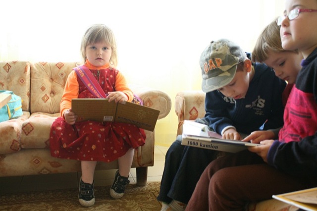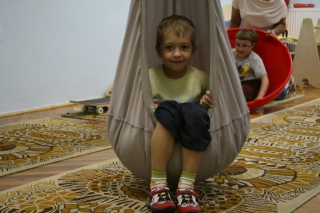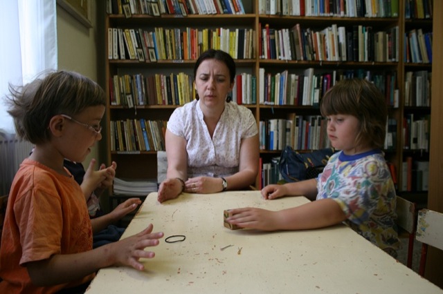 Közben kisebb gyerekcsapat érkezett. Mint kiderült, fejlesztő foglalkozásra jöttek. Gyorsan le is telepedtek Majorosné Bartos Orsolya gyógypedagógus-logopédus köré, s megkezdődött a komplex fejlesztő óra.