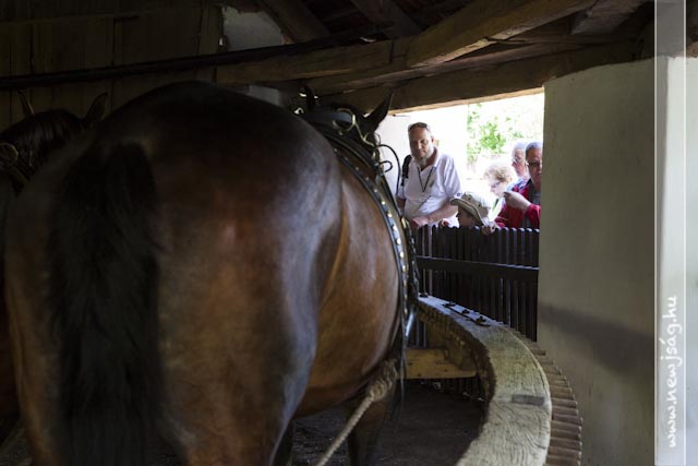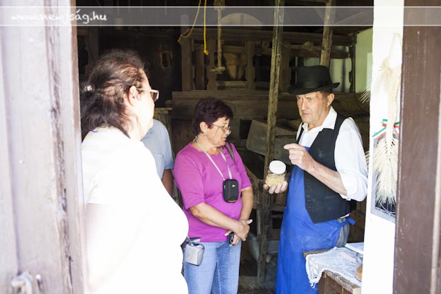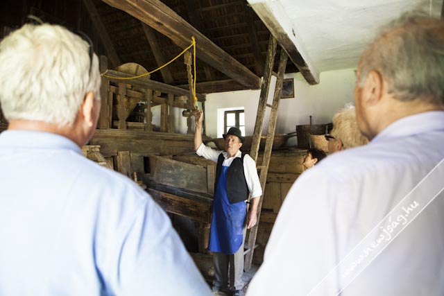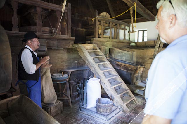 A szárazmalmok működéséről Roszik Mihály adott kimerítő tájékoztatást. Részletesen elmagyarázta, hogy a lovak által hajtott kerék hogyan adja át a hajtást a forgó malomköveknek, mitől lesz finomabb, vagy durvább szemű a gabona őrleménye, de alaposságában kitért lengőkaros mécses funkciójára is.