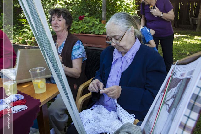 Míg odabent a férfiak tartották fenn a látogatók figyelmének fonalát, odakint a hölgyeké volt a terep. Az udvaron felállított sátrak alatt a Gobelin Hímző és Kézimunkaszakkör tagjai kisebb kiállítás keretében végezték kedvenc hobbi tevékenységüket, ill. mézeskalács bemutatót tekinthettek meg az édesszájúak.