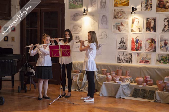 A Chován Kálmán Művészeti Alapiskola harmonikásai fogadták azokat az érdeklődőket, akik az iskola képzőművészeinek alkotásaira voltak kíváncsiak. A Chován tudat- ill. gazdahasadásos állapotának egyik felét Hodálik Pál alpolgármester képviselte, aki megköszönte a szülők áldozatvállalását, amivel hozzájárulnak ahhoz, hogy minél több szarvasi gyermek ismerkedhessen a művészetekkel, aminek részeredménye a falakon és tablókon, sőt, a földön kiállított sok-sok, szebbnél szebb alkotás. Alpolgármesterünk a város egyik büszkeségének nevezte az intézményt, ami körbenézve egyáltalán nem volt túlzás.
