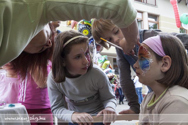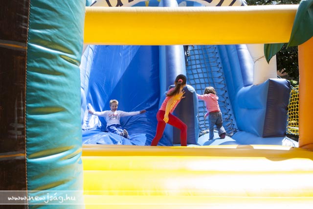 Természetesen nem csak a színpadon zajlottak programok, hanem a tér teljes területén. A parkolóban a mentősök, a tűzoltók és a rendőrök mutatkoztak be nagy sikerrel. Az este biztosan sok kicsi úgy feküdt le, hogy rendőr, mentős vagy tűzoltó lesz. A sátor mögötti parkolóban kerékpáros akadálypályán mérhették össze ügyességüket a vállalkozó kedvű bátrak. Akik mozgásra vágytak, a téren számtalan lehetőség közül választhattak, hogy a délutáni alvás helyett pl. ugrálóvárazzanak. Aki szépülni vágyott, kérhetett egy pillangót, vagy virágot a arcfestőktől.