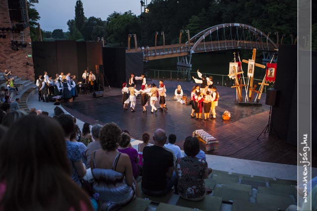 A csütörtök este a néptáncosoké volt a Vízi Színház színpada. Két együttes lépet színpadra a 66 éves Balassi Táncegyüttes és a 45 éves Tessedik Táncegyüttes.