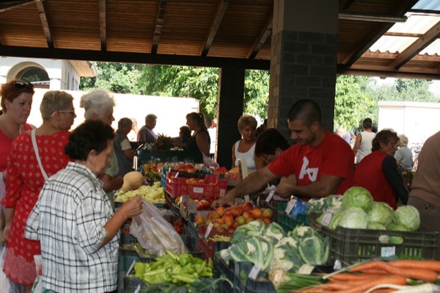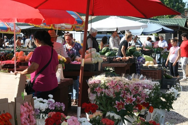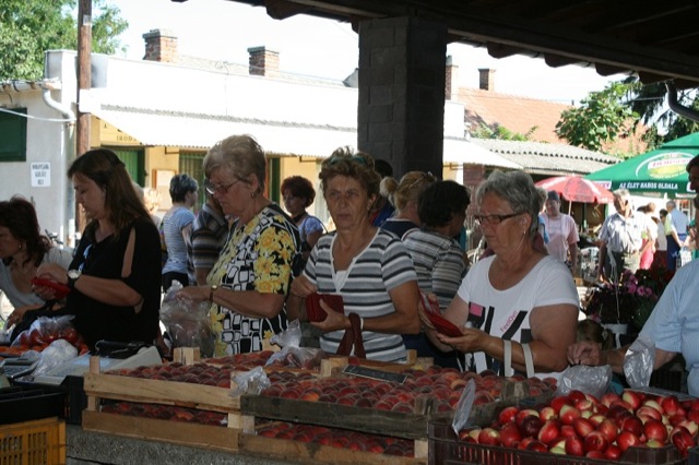 Szarvason a heti három piac közül általában a pénteki a legnagyobb. Ez ma délelőtt is igaznak bizonyult, az árusok sok-sok gyümölccsel és zöldséggel, a vevők pedig nagy szatyrokkal és kosarakkal érkeztek.