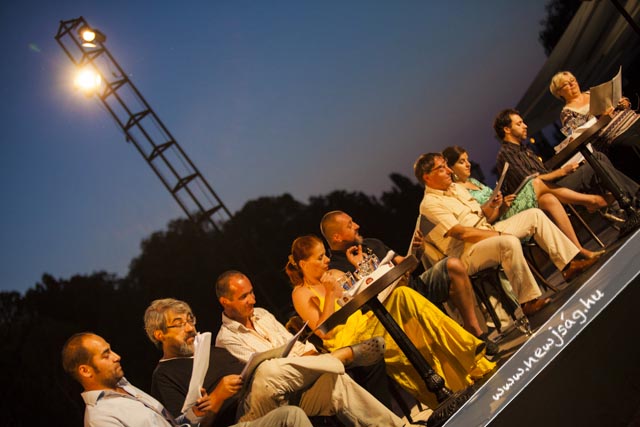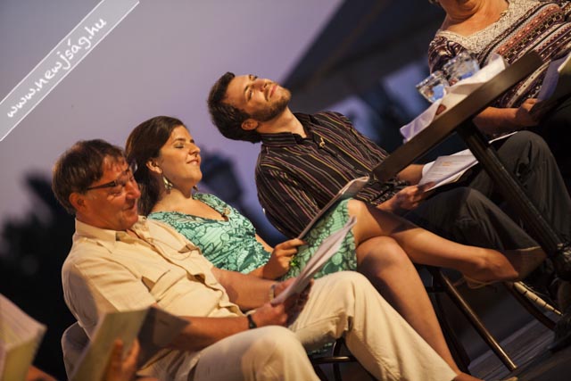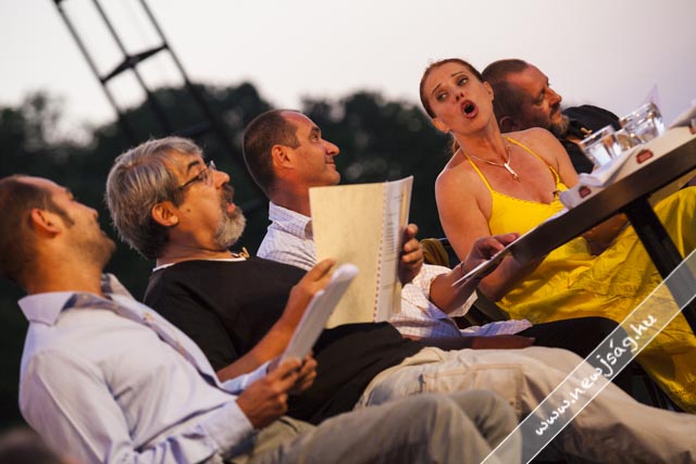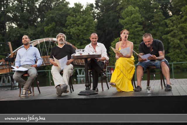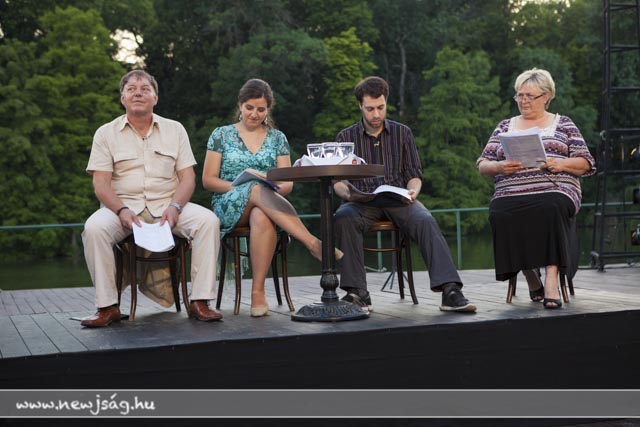 Ivan Holub „Temetés” című felolvasóestjét láthatta, halhatta az szépszámú közönség, aki szerda estén a Szarvasi Vízi Színház nézőterén foglalt helyet. Nem igen szeretem a fekete humort és a darab után kutakodva sem találtam semmit, a rövid ismertetőn kívül. A darab főszereplője Milos Pohánka (Korcsmáros György), gazdag mészáros, aki készül halálára, hiszen egy hiper-szuper koporsót rendel magának. Amikor megérkezik éppen a születésnapjára a koporsó úgy dönt, kipróbálja milyen lenne, ha meghalna. Kíváncsi rokonai reakciójára. Tervébe beavatja az orvost (Varga Viktor), aki nem szívesen, de segíti tervei megvalósításában (anyagi ellenszolgáltatásért). A többi jön magától. Angéla, Pohánka húga (Dósa Zsuzsa) határozott nő, nem tétlenkedik, ami jár, az jár gondolkodású, rögtön a tettek mezejére lép. Férje (Benkő Géza), azt csinálja, amit az asszony mond, ha nem is ért vele egyet. A nadrág Angélán van! Márta a sógornő (Brachna Irén), aki szerelmes Pohánkába és remélte, hogy még összejönnek, szomorú, de igencsak felvágták a nyelvét. Fia (Korcsmáros András) éppen hódításra készül Pohánka unokaöccsének (Kiss László) lányát, Irént (Csasztvan Zsuzska) szeretné megkapni, aki viszont szereti, ameddig ki nem derül a fiú valódi szándéka. Irén az egyetlen őszinte ember, akit nem a vonz a pénz.