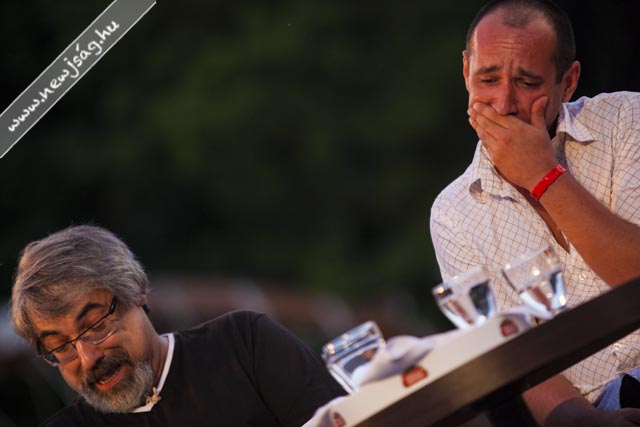 Nekem Dósa Zsuzsa és Brachna Irén játéka kiemelkedett, zseniálisak voltak, főleg az egymással való szópárbajokban. De minden színész nagyon jó volt, másképp nem is lett volna sikeres az este, mindenkiről csak jót lehetne írni. Külön tetszet, hogy maguk a szereplők is nevetgéltek egy-egy mondaton. Tetszet, hogy annyira beleélték magukat a játékba, hogy Dósa Zsuzsa sokszor majdnem felállt a székről, hogy nekimenjen sógornőjének. Varga Viktor egyszer fel is állt, amikor szerepe szerint mennie kellett. Akiről még szólnom kell, az Csasztvan Andás, aki a mesélője, közvetítője volt a történetnek. Remekül oldotta meg feladatát.