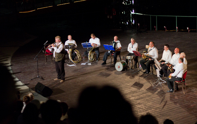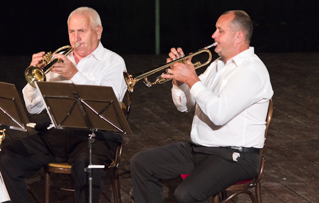 A rezesbanda programjában a polkától a walzeren át a lakodalmas dallamokig sok minden szerepelt. Az este katonai toborzókkal zárult.